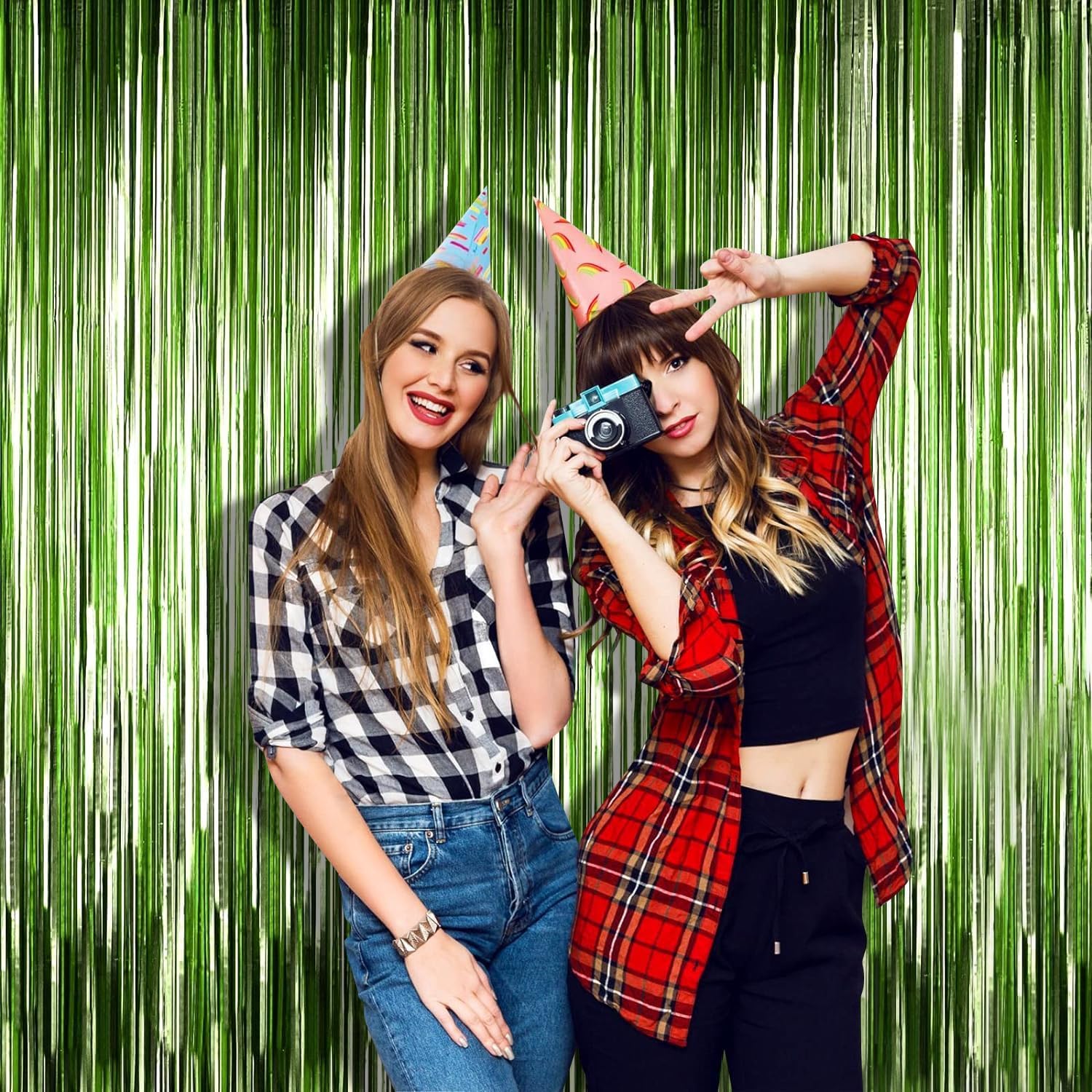 4P Metallic Foil Fringe Tinsel Table Skirts for Rectangle Tables Backdrop Banner Streamer Garland Curtains for Parade Floats Wedding Graduation Anniversary Birthday Parties Decoration (Light Green)
