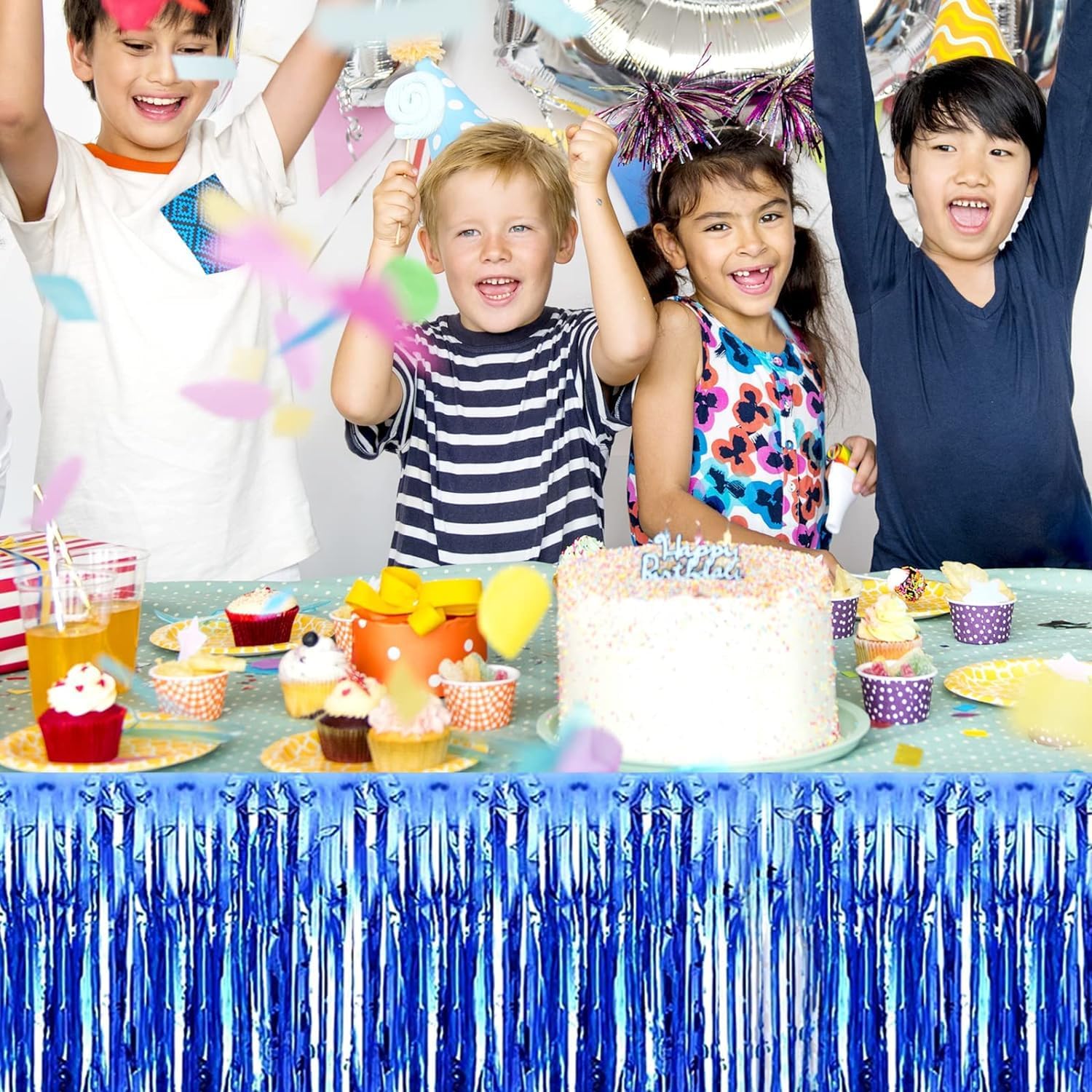 4P Metallic Foil Fringe Tinsel Table Skirts for Rectangle Tables Backdrop Banner Tinsel Streamer Garland Curtains for Parade Floats Wedding Graduation Anniversary Birthday Parties Decoration (Blue)