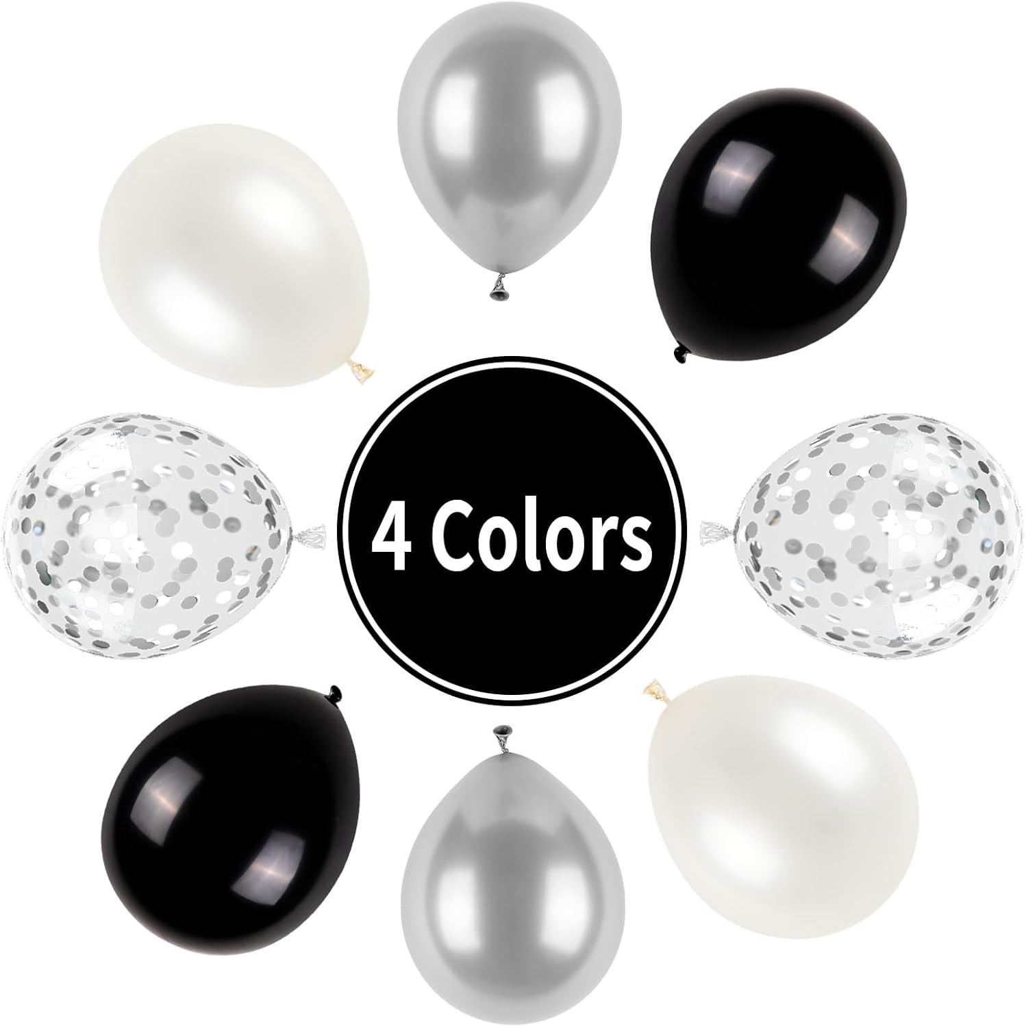 Black and Silver Balloons, Metallic Silver and Black Balloons Pearl Silver Confetti Balloons Party Balloons Chrome Latex Balloons for Kids Adults Birthday Wedding Baby Shower Graduation