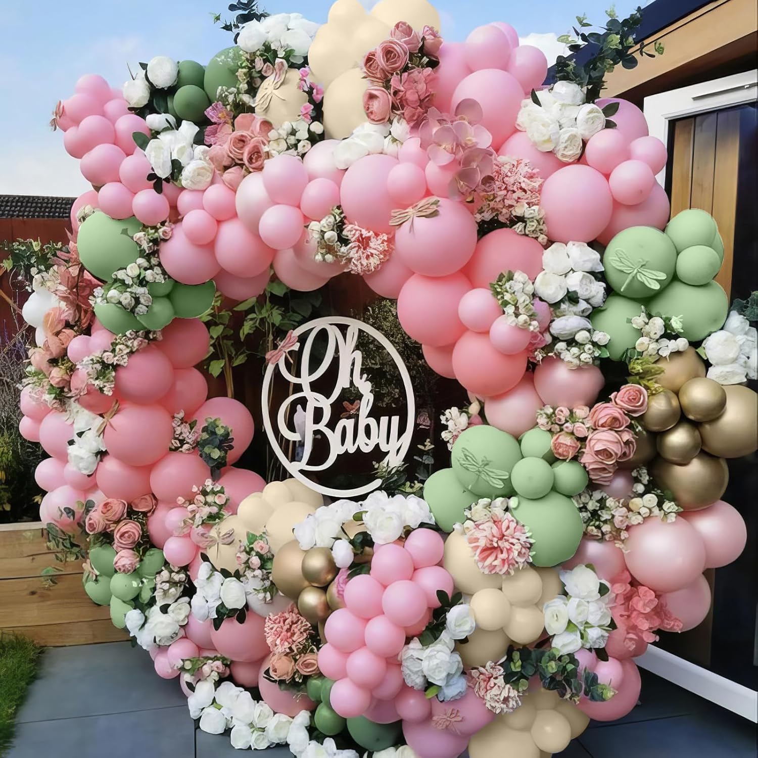 Pink and Green Balloons, Sage Green White Sand Party Balloons Chrome Metallic Gold Balloons Green Pink Latex Balloons for Kids Adults Boho Birthday Jungle Safari Party Wedding Baby Shower Graduation