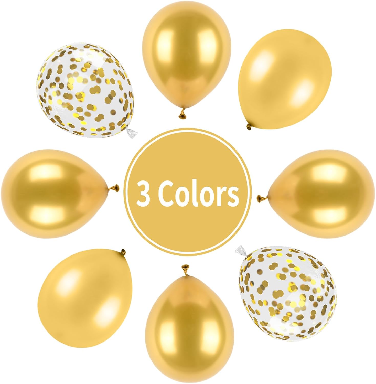 - 【12Inch Party Balloons Set】: The gold balloons set includes 15pcs metallic gold balloons, 25pcs pearl gold balloons, 20pcs gold confetti balloons, 1pc silver ribbon. 61pcs in total. Elevate your celebrations with our birthday party balloons!