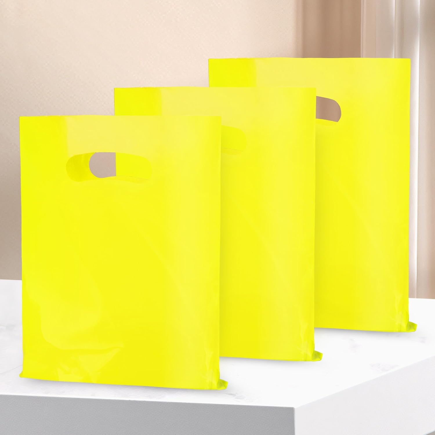 - 【Premium Thick & Durable Goodie Bags】With high-quality plastic material, the yellow party favor bags are 2.36 mils on each side, solid and durable. It is reusable, and not easy to tear and can be used in many field, including wholesale and retail.