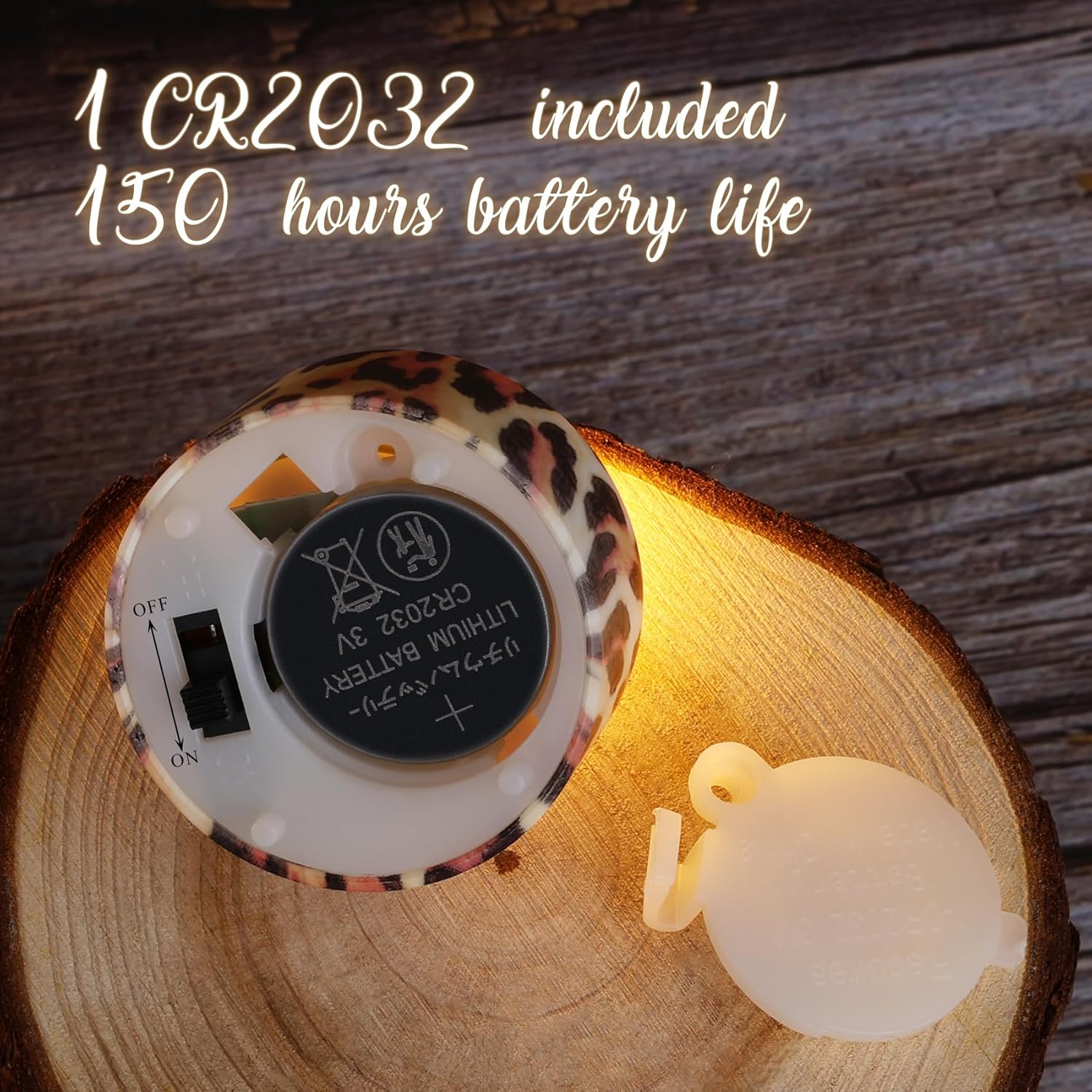Eywamage Leopard Flameless Tealights with Remote Batteries Included, Flickering Plastic Cheetah LED Tea Votive Candles Set of 12