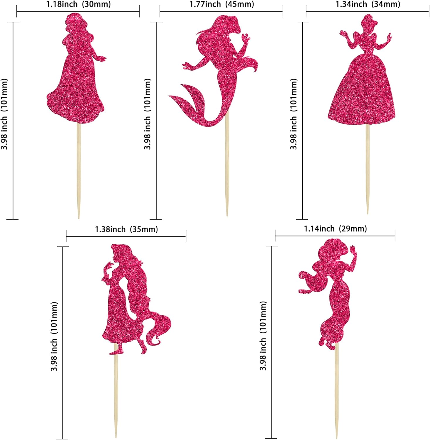 - đź‘‘đź‘‘Premium Material: These Colorful Princess Cupcake Toppers are made of high quality 300 gram card stock and food-grade toothpick, very safe to put them on cakes, cupcakes, ice cream, fruits, pie, dessert, cheese or any dish and food appetizer you want to decorate princess party decorations.