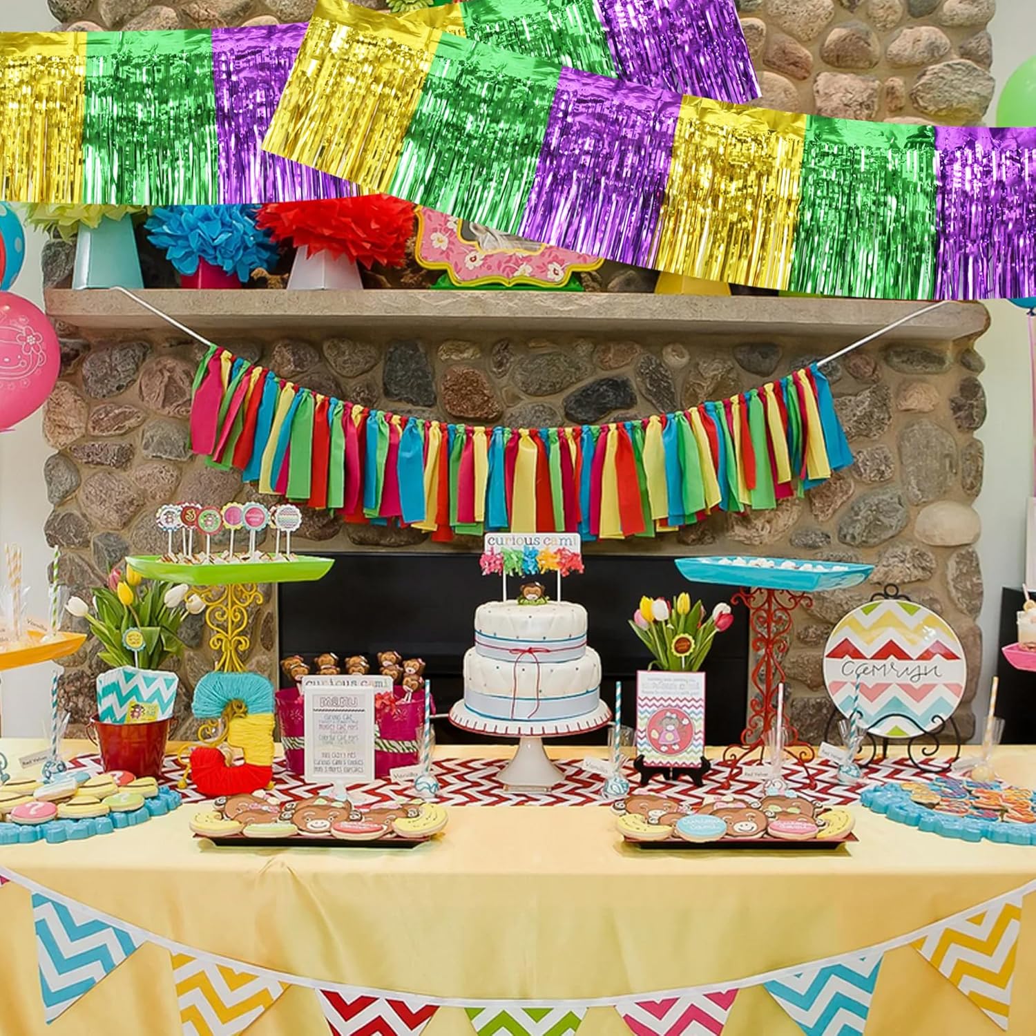 - 【Package includes】:3 Packs Green Gold Purple shiny fringed tassel banner, each tassel garland is about 10 feet long, enough to decorate your party.
