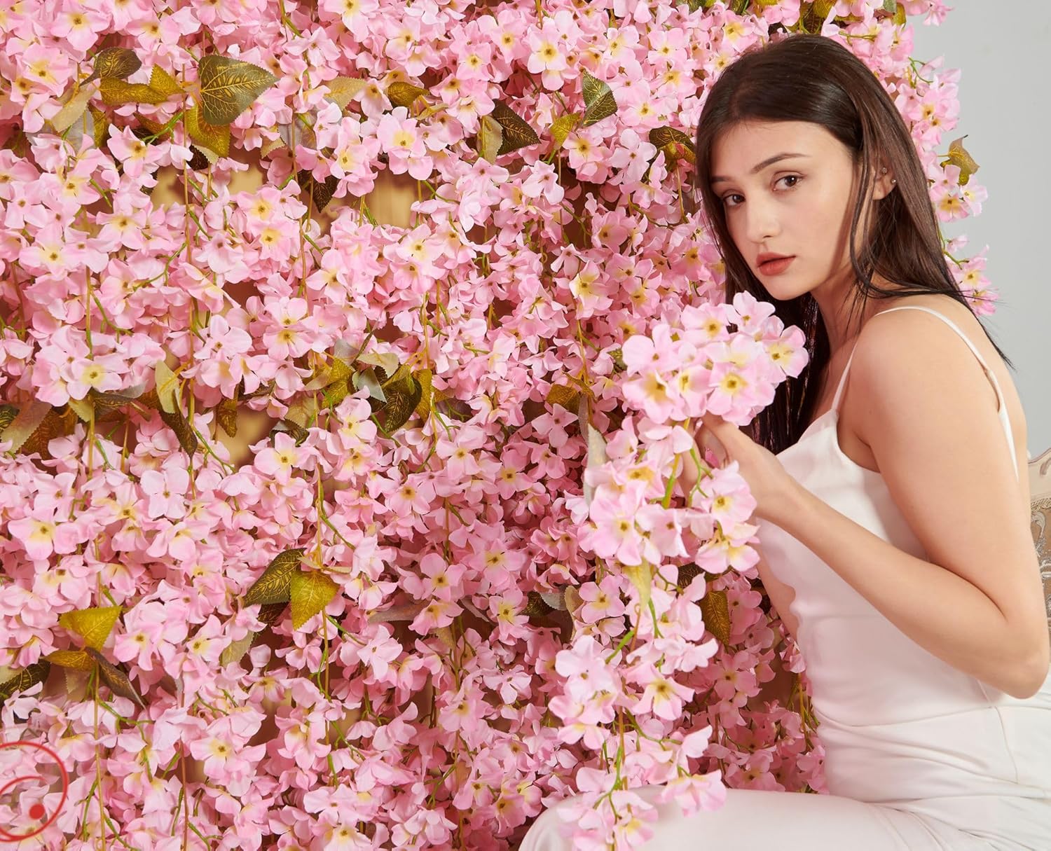 - Hi, dear: We suggest that you carefully check the product information before purchasing, which can reduce your return time. The flowers and leaves of this product can be removed (a small amount of flowers falling into the box may affect your experience). When decorating, multiple vines need to be used together (one vine alone is not full), made of plastic and silk (there will be a plastic smell when received)
