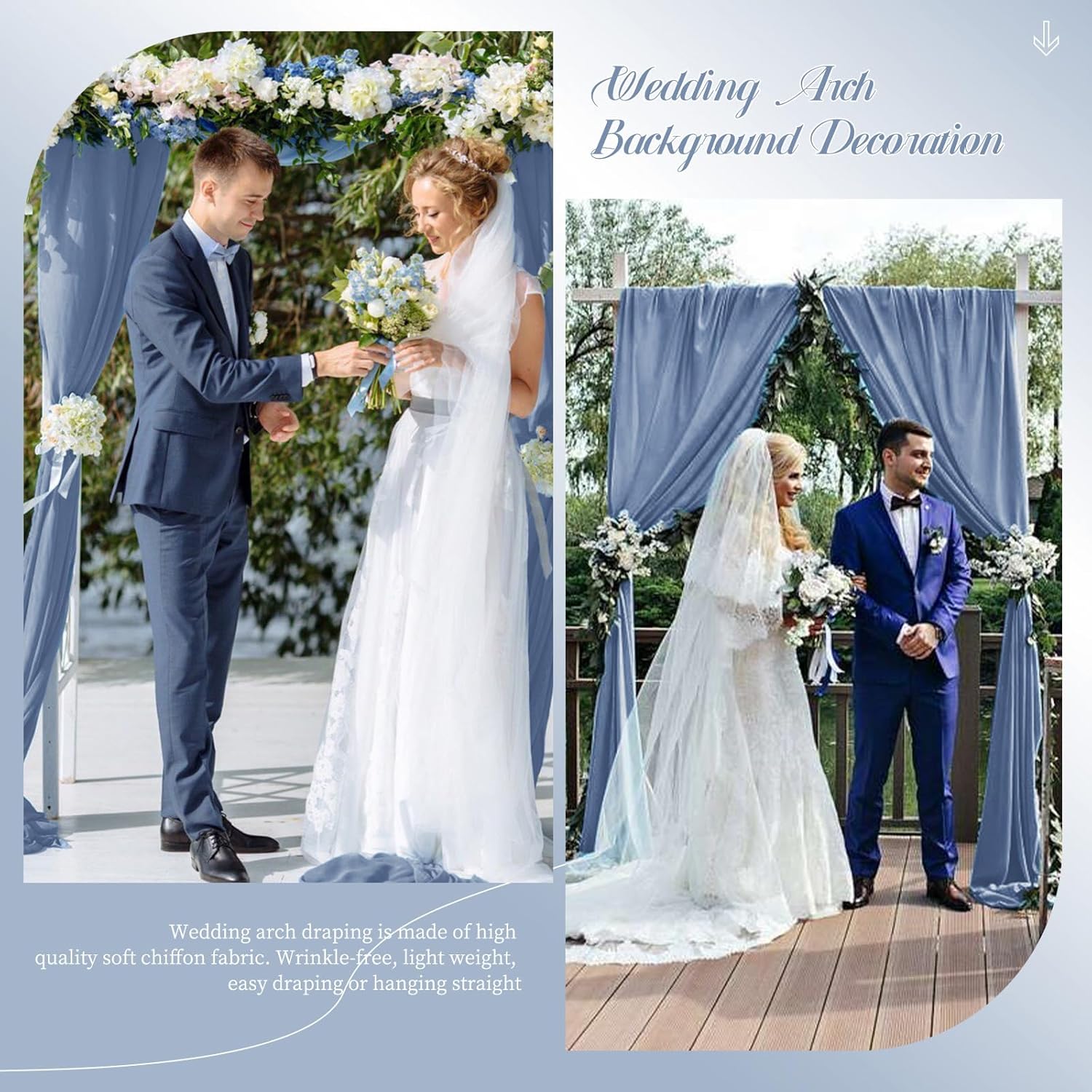 Wedding Arch Draping Fabric, 4 Panels 28" x20ft Dusty Blue Sheer Chiffon Curtain Drapes for Wedding Drapes Sheer Backdrop Curtains for Wedding Ceremony Reception Party Decoration