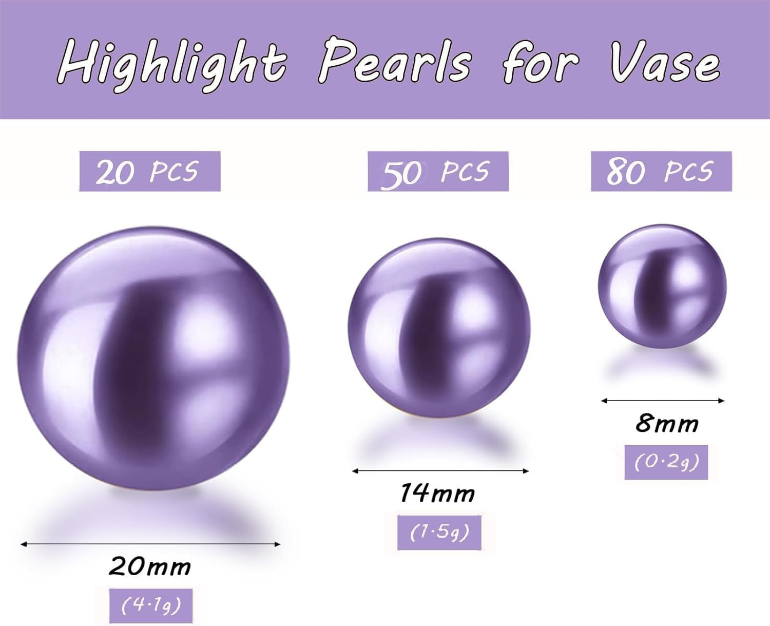 150Pcs Light Purple Polished No Hole Faux Pearl Beads for Vase Filling Decorations, Plastic Pearls Vase Fillers, Table Scatters, Wedding Centerpiece, Home Decor, 8/14/20 mm