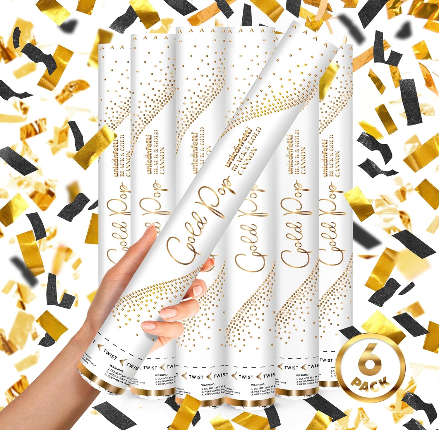 - π 6-PACK OF EXCITEMENT - Each box contains 6 BIG BOY CANNONS (16"), for Black & Gold Wedding, Wedding Send Off, Bachelorette, New Years Eve, Parties, Birthday, Graduation!