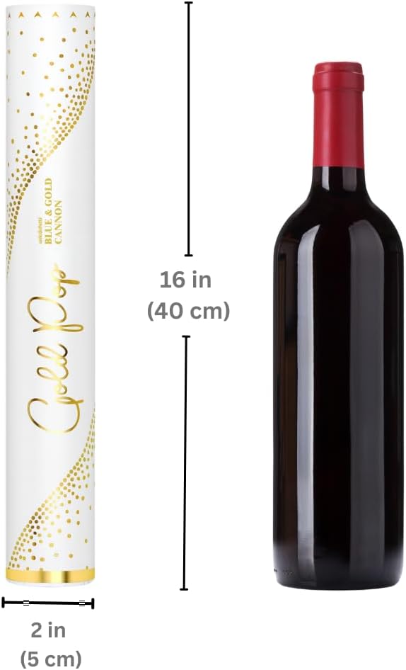 - π SUPER LOUD & FUN for any party or occasion - 6 JUMBO-SIZED poppers shooting blue & gold confetti papers up to 25 feet, leaving them to dance and twirl in the air. Poppers will shoot with a loud [POP] that will guarantee to get everyone's attention.