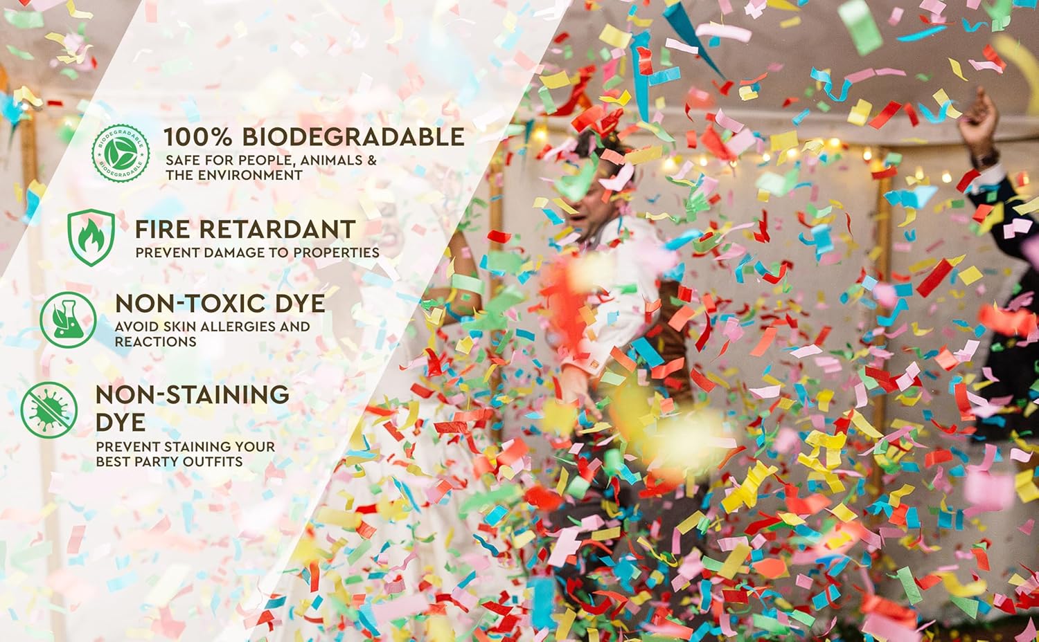 - π 100% BIODEGRADABLE [NOT PLASTIC] - Confetti is made of lightweight fire resistant tissue papers, 100% biodegradable, most venues will approve. Our BLUE & GOLD Confetti Paper is NOT PLASTIC or PVC. 100% safe for your party and good for the environment.