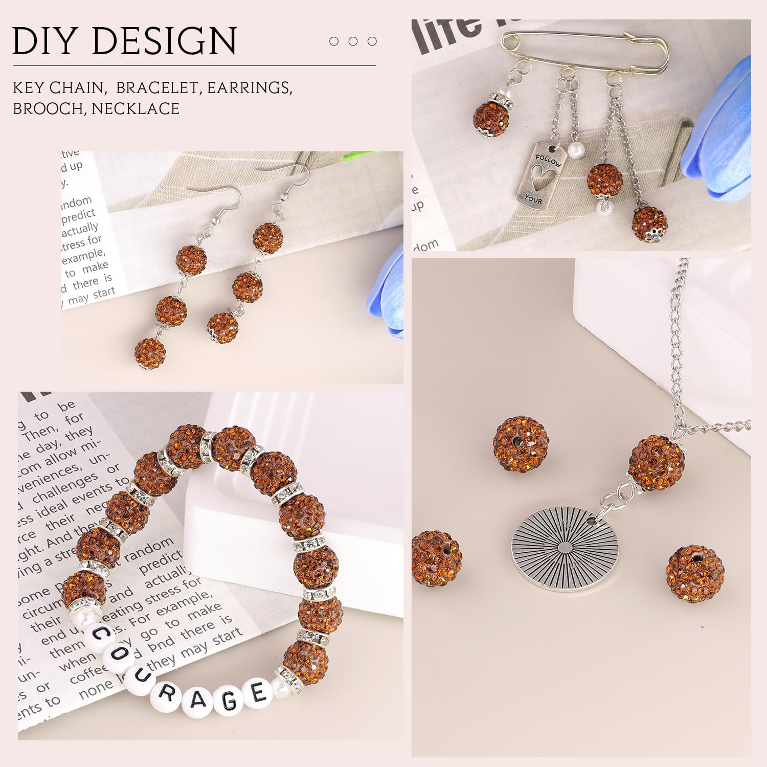150 pcs 10mm Rhinestone Beads for Jewelry Making, Brown Shiny Round Shamballa Disco Beads Bulk, Sparkle Crystal Clay Christmas for Bracelet Baseball Necklace Earring Crafting and DIY