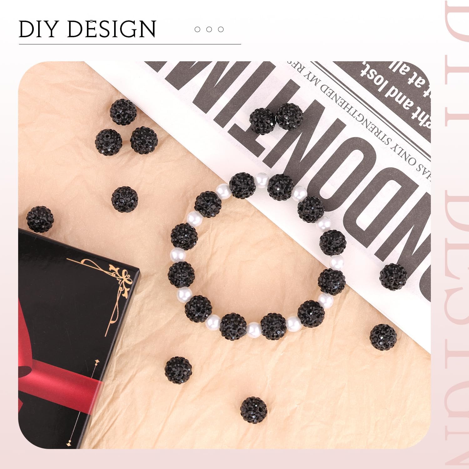 150 pcs 10mm Rhinestone Beads for Jewelry Making, Black Shiny Round Shamballa Disco Beads Bulk, Sparkle Crystal Clay Christmas for Bracelet Baseball Necklace Earring Crafting and DIY