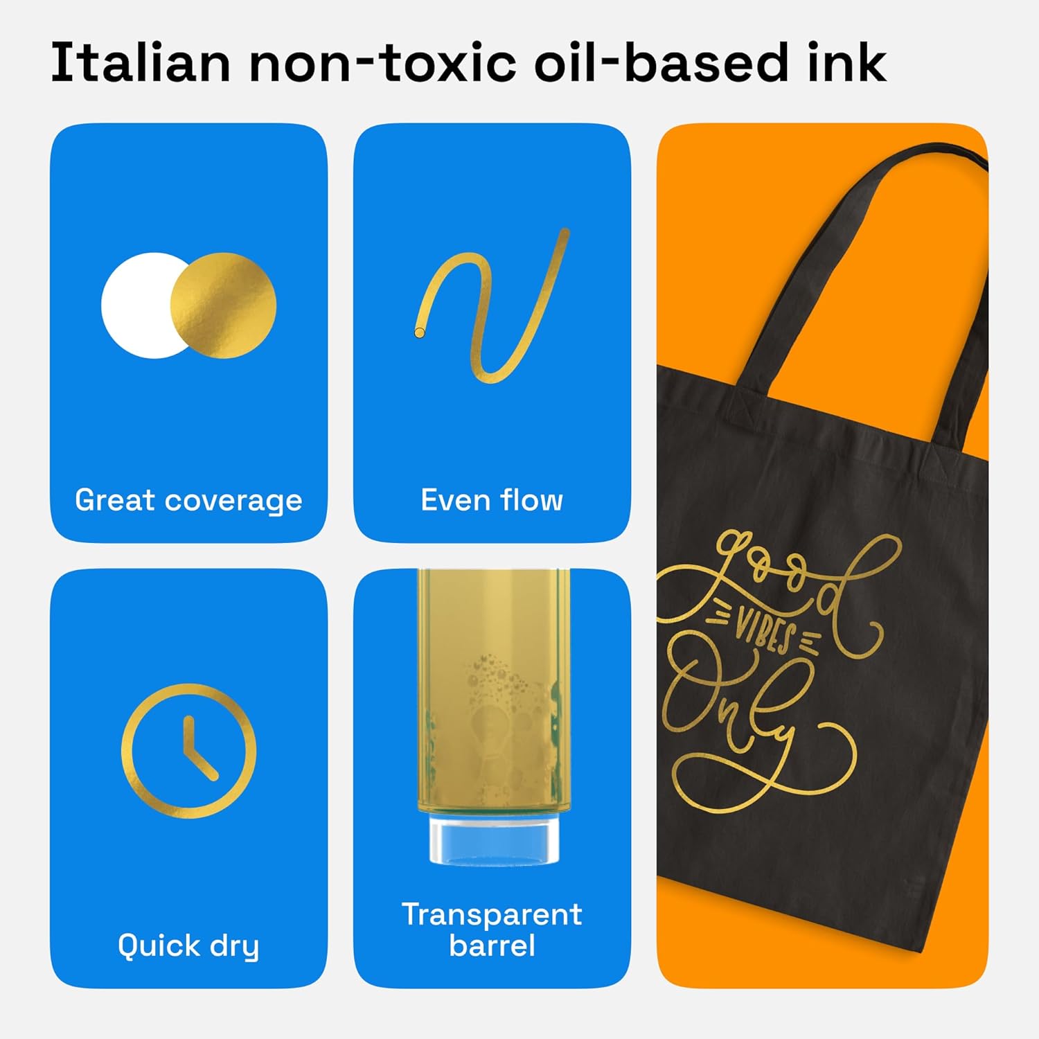 - Non-Toxic: This gold oil paint set conforms to ASTM D-4236 safety standards. Plus, there’s no odor with your oil markers paint pens. Each oil based marker is ready to use with any project and is safe for kids and adults!