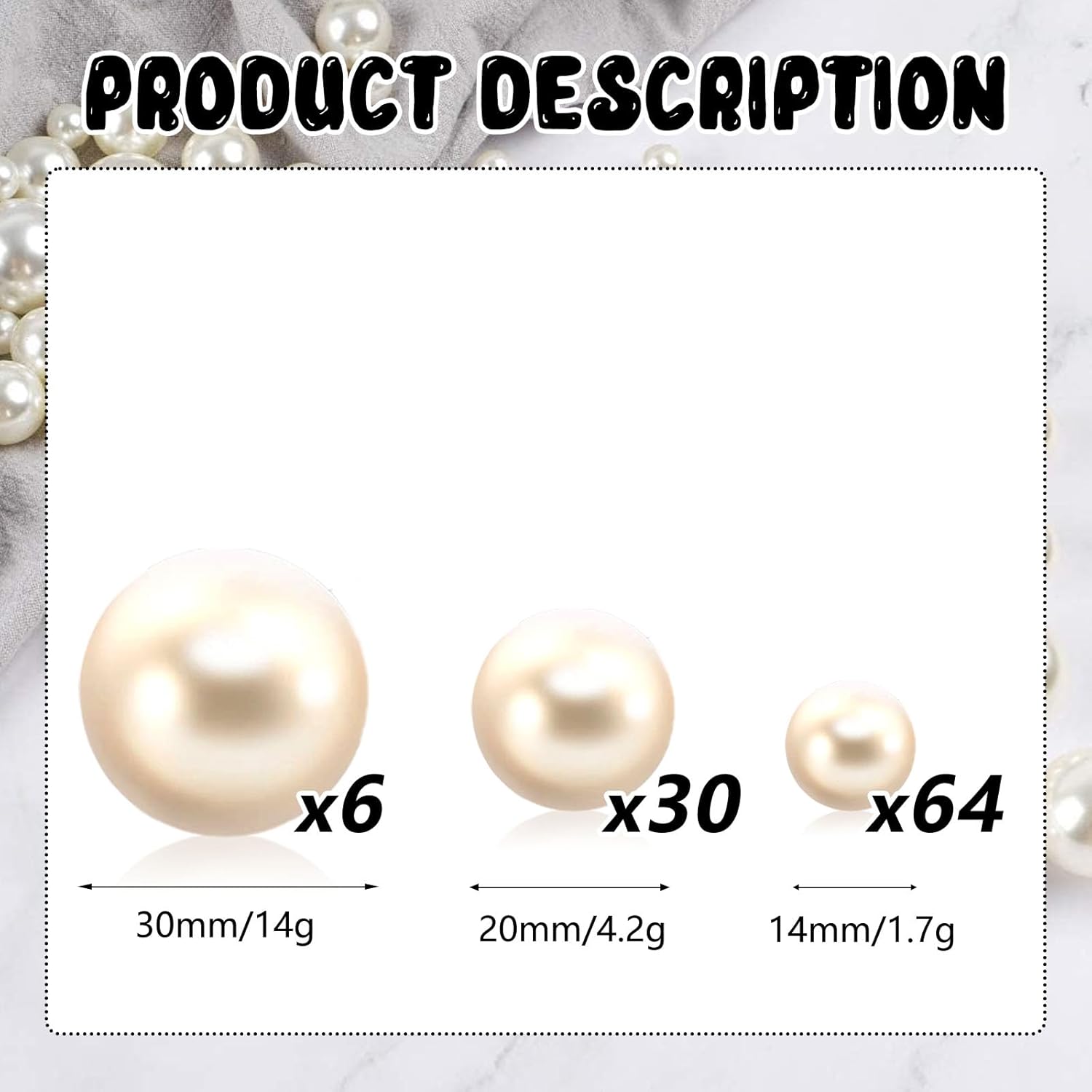 100PCS Milk White Faux Pearls Beads for Centerpiece Vases, Vase Filler Faux Pearls, No Holes Filler Beads for Party Anniversary Birthday Wedding Table Decor, 14/20/30mm