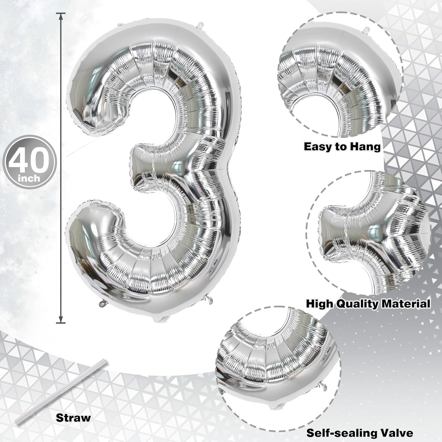 - π Silver Number 30 Balloon: Our package included 40 inch number 3 & 0 balloon and 1pcs straw. Simply inflate the balloon using the straw, and you're ready to party! Silver number foil balloons are the best for women men birthday party decoration.