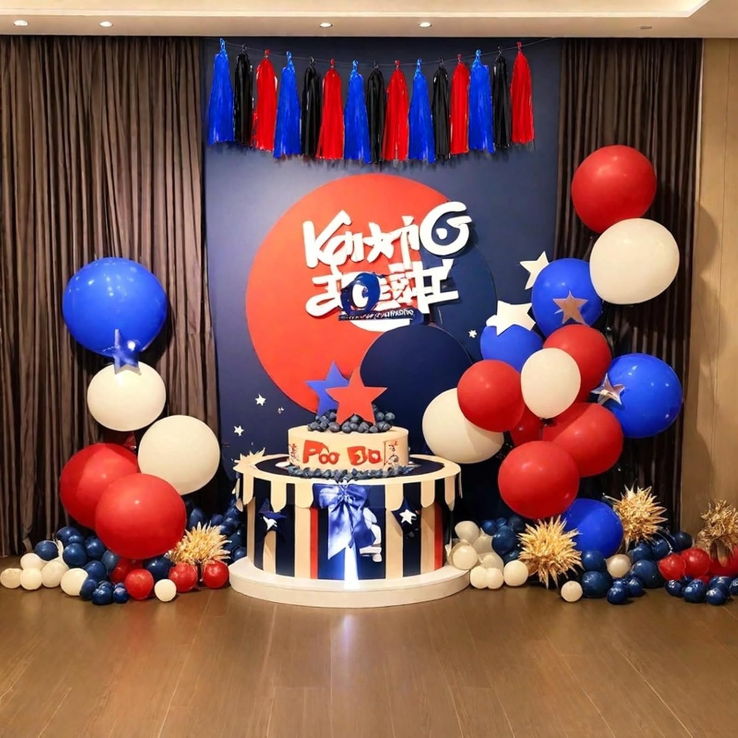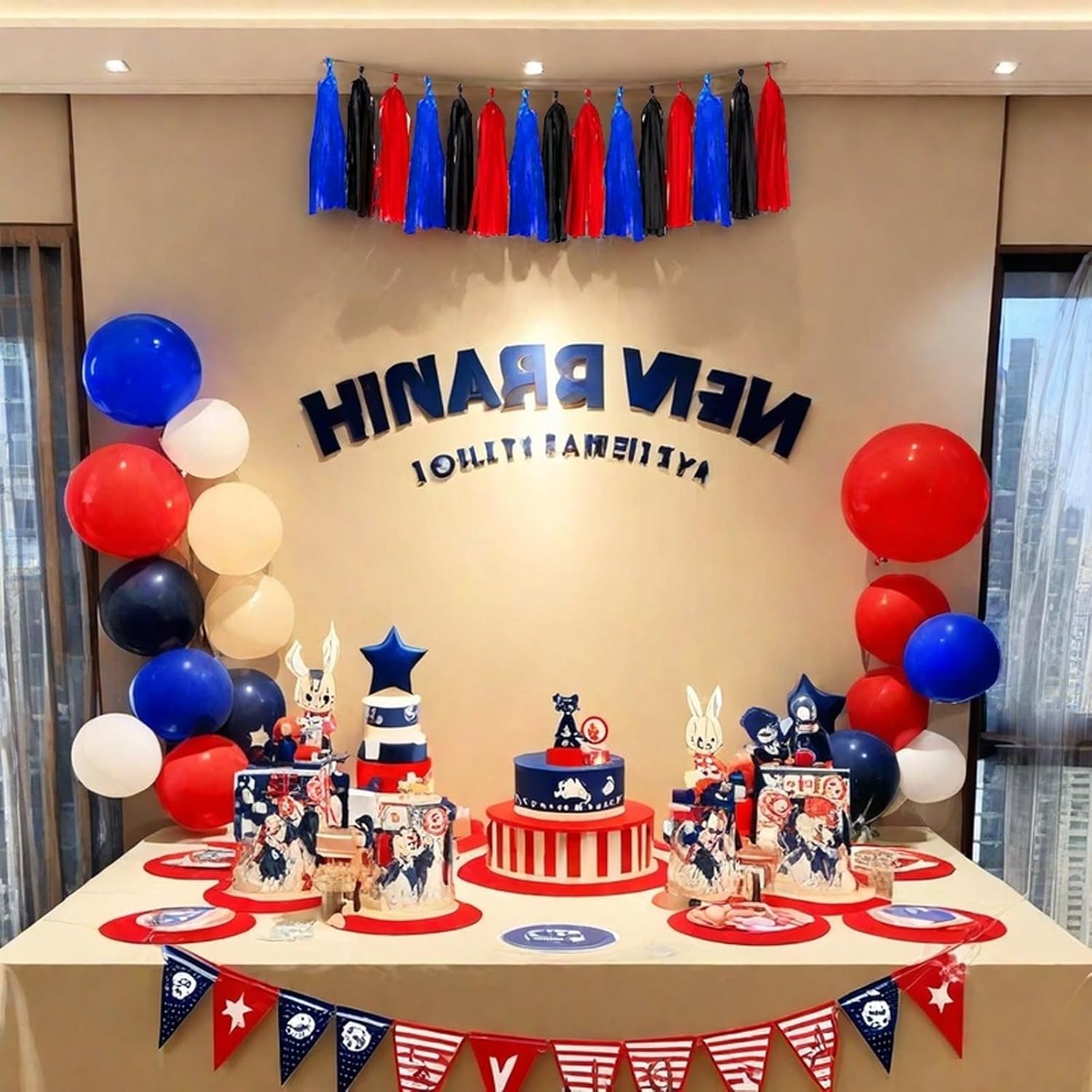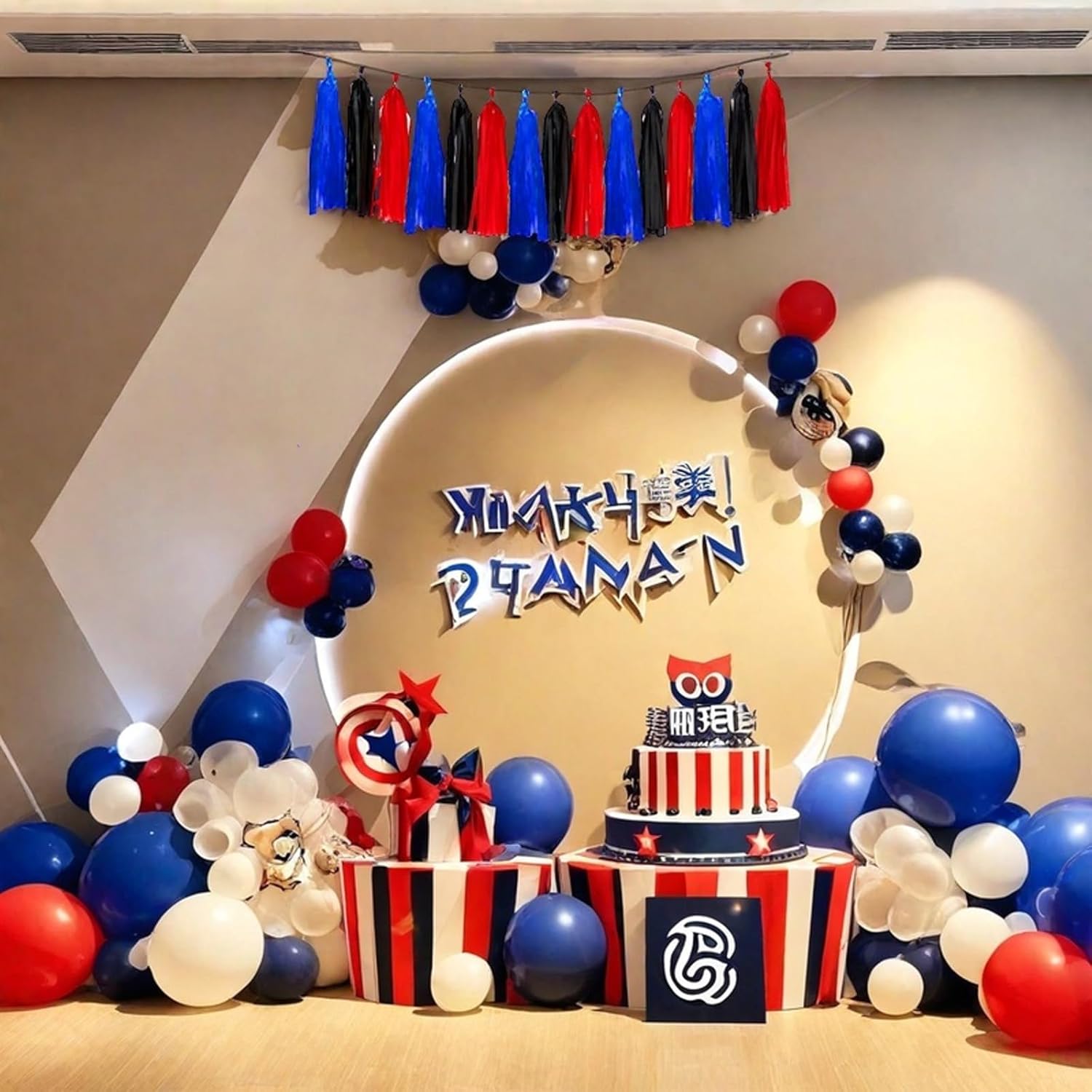 Red Blue and Black Tassel Garland Banner Paper Tassels for Birthday Party Decorations,Pack of 15