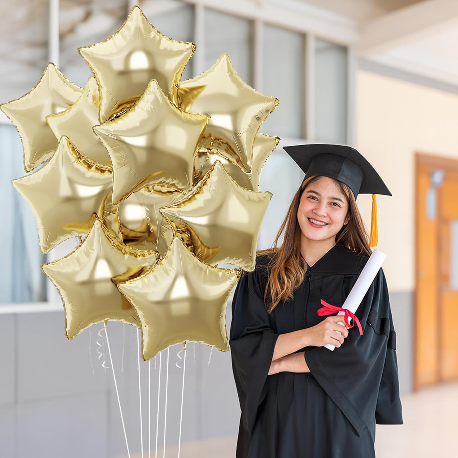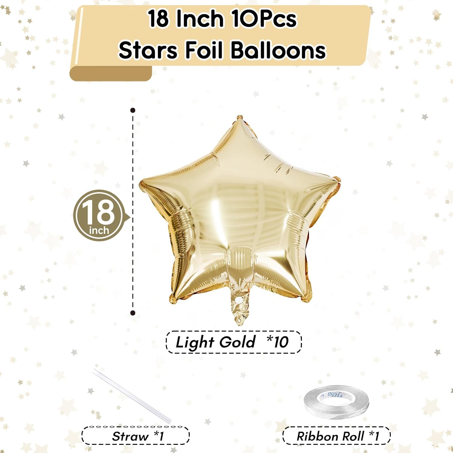 - Gold Party Decorations: This 10Pcs gold star balloons kit includes 18'' star foil balloons, with gold star balloons and ribbon