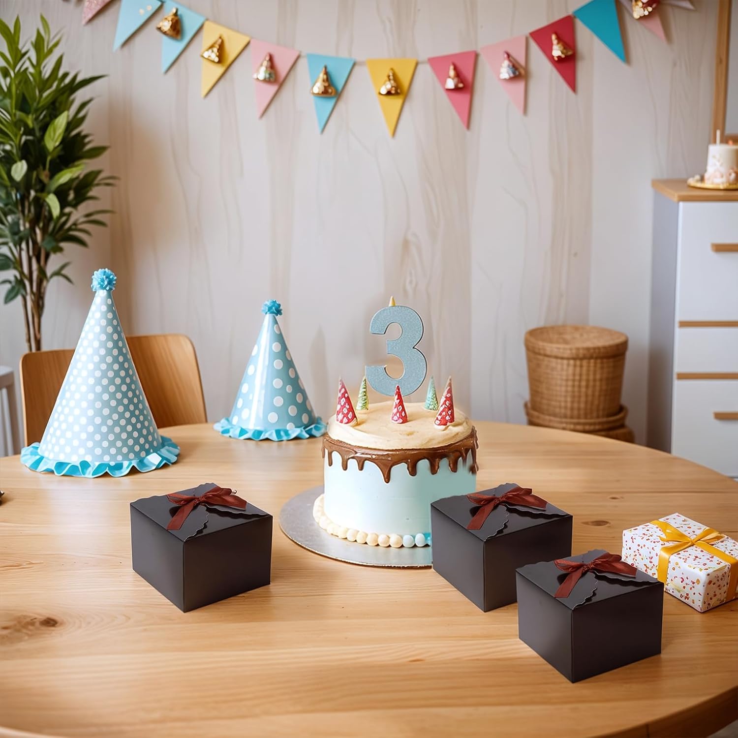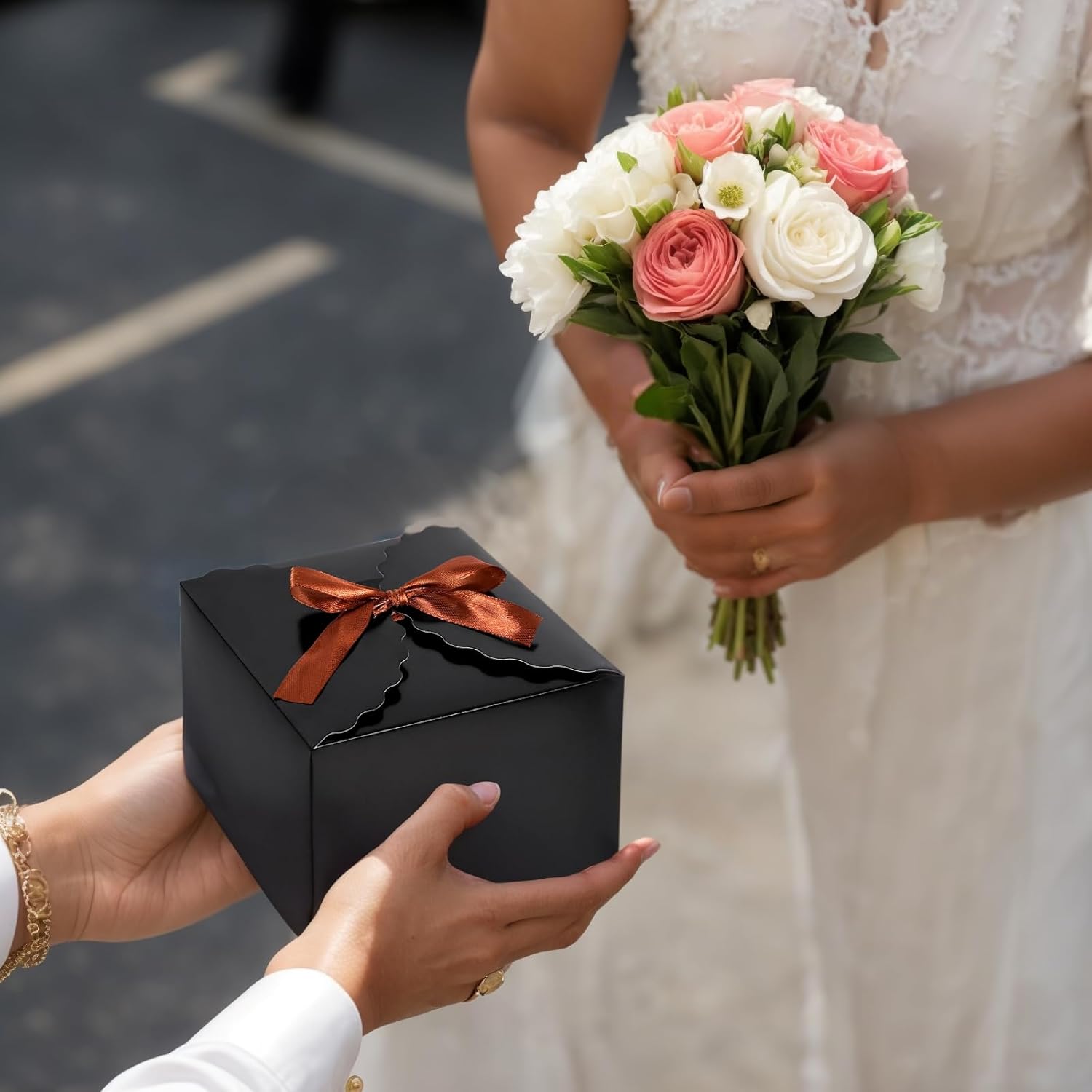 - Package Includes: 10 black gift boxes made of high-quality, durable paper, along with 10 ribbons. Each box measures 4.7" x 4.7" x 3.5"