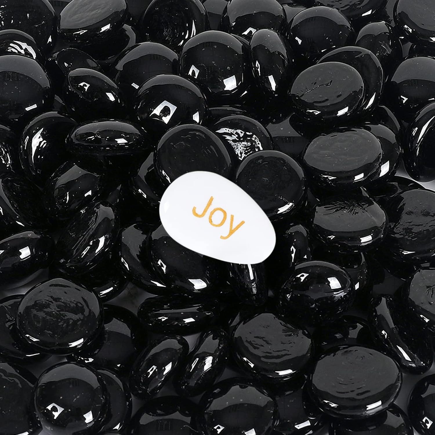 - 【Size & Color】The length of Ausluru pretty glass beads ranges from 0.6”-0.7”, Black Color. Come with 11lb and one engraved rock with different words of inspiration in per bag.
