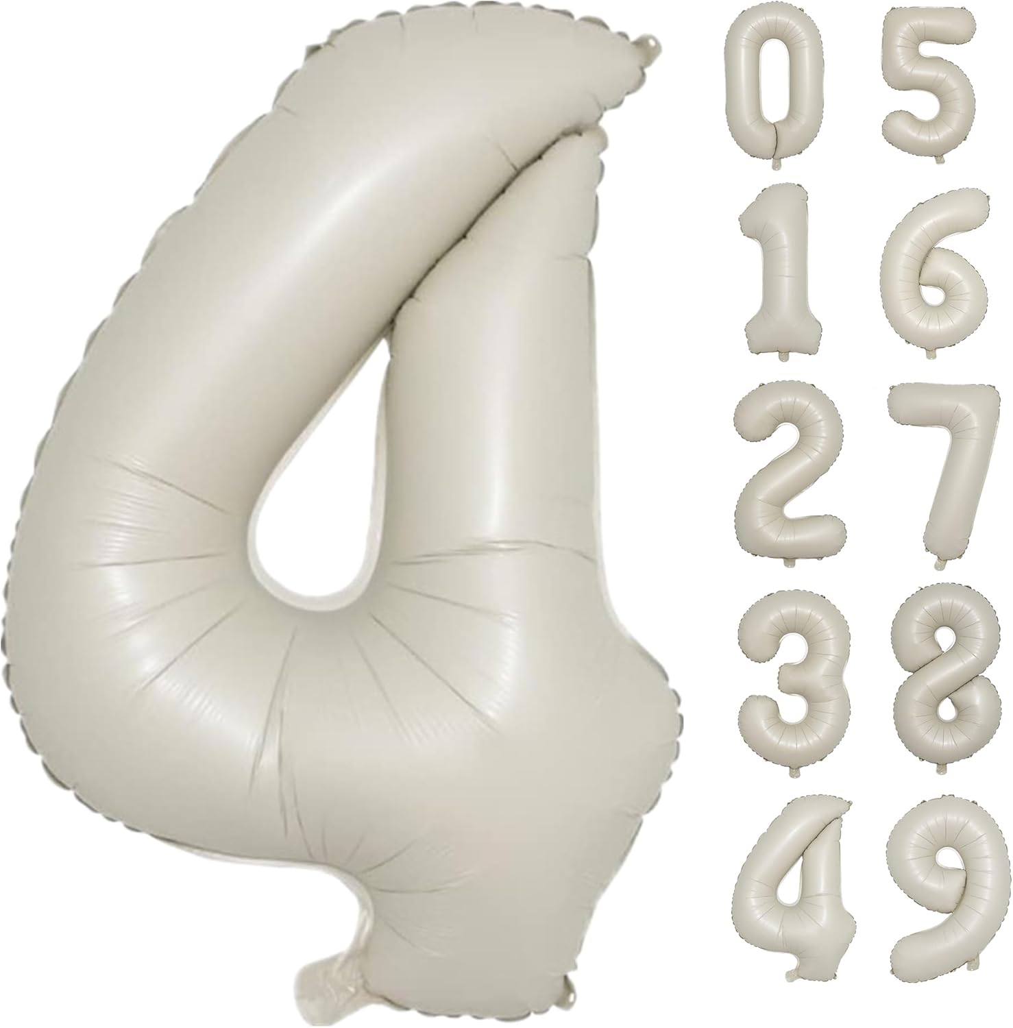 40 Inch Cream White Numbers Balloons0-9,Number 4 Digit Helium Balloons,Foil Mylar Big Number Balloons for 4th 14 Birthday Party Supplies Decorations Anniversary Wedding Supplies Decorations