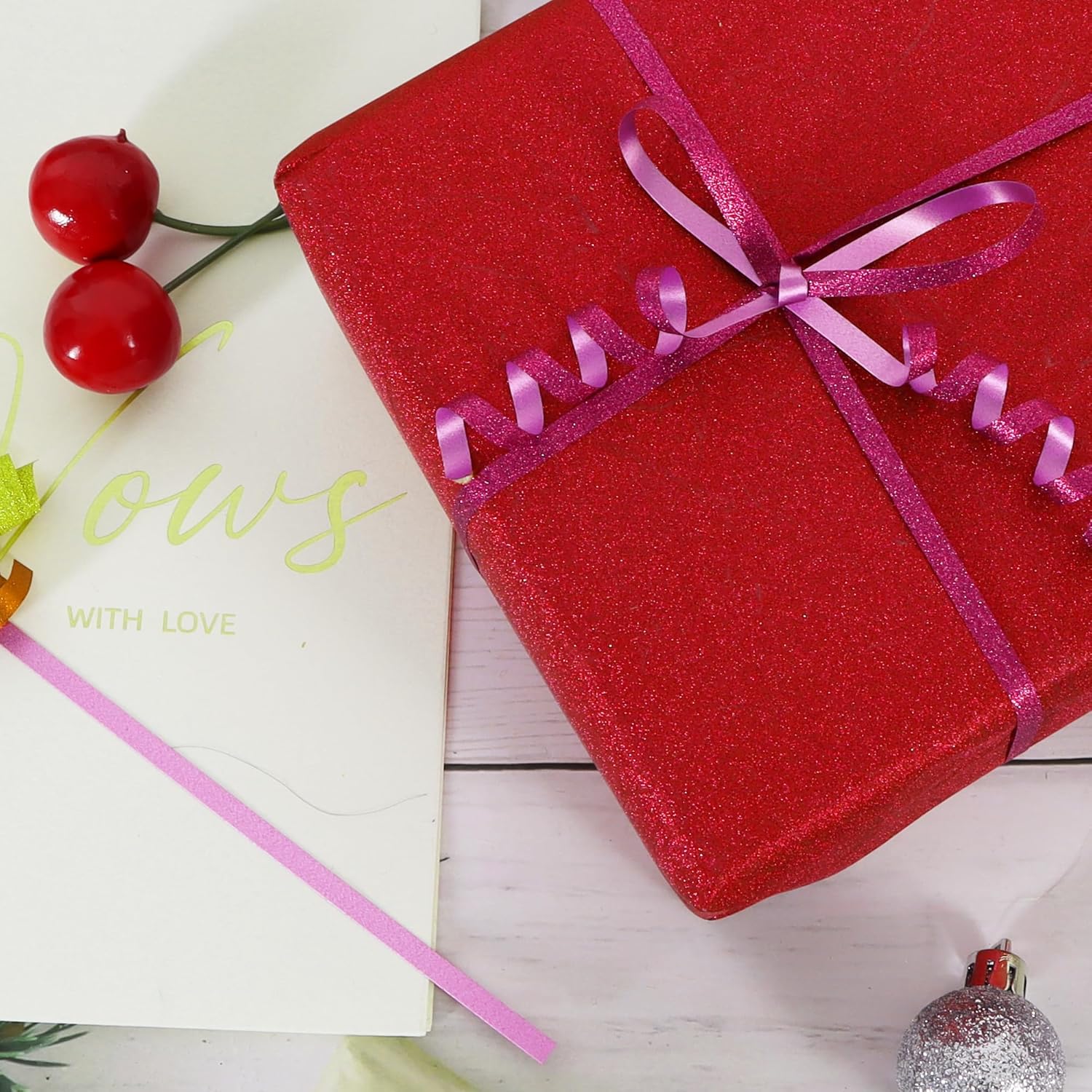 - Bright and attractive: the ribbon is hot pink glitter color, with holographic sparkles, very shining and glossy, helping to enhance your festival or party atmosphere