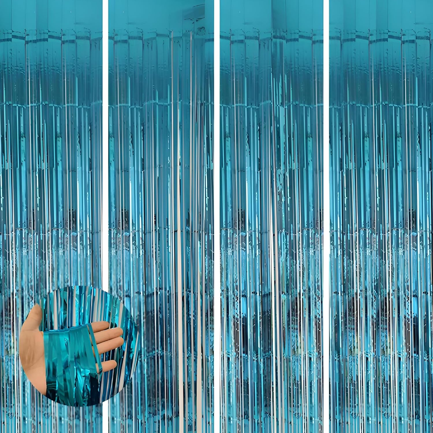 Keyali 4 Pack 3.3 * 8.3 ft Foil Curtain Metallic Tinsel Fringe Curtains Photo Booth Props Backdrop for Birthday Wedding Engagement Baby Shower Christmas Holiday Celebration Partyl,Light Blue