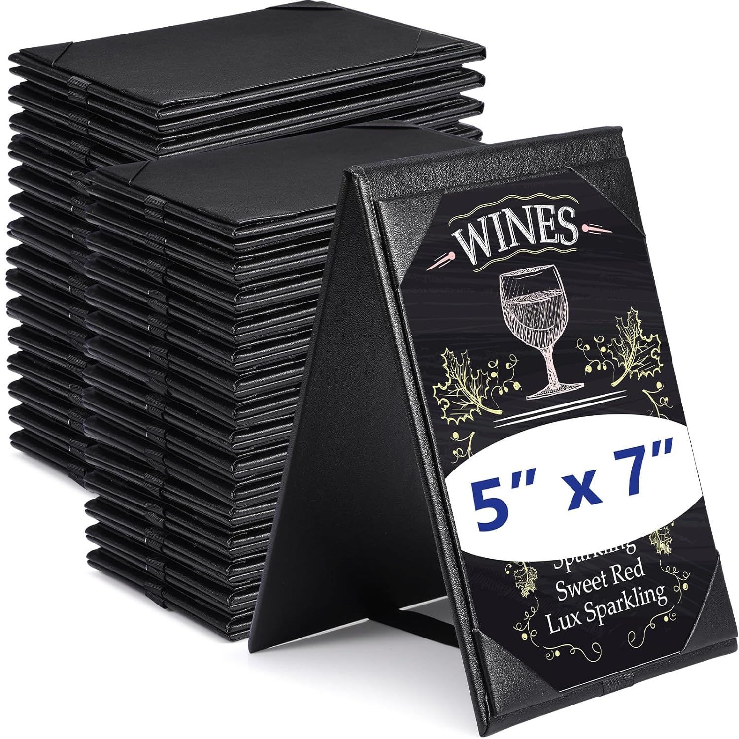 Gerrii Leatherette Table Tents Black PU Leather Menu Covers Bulk Double Sided Frame Sign Holders 2 Side Drink Dessert Menu Folders for Restaurant Coffee Cafe Bar Wedding Supplies(30 Pack,5 x 7 Inch)