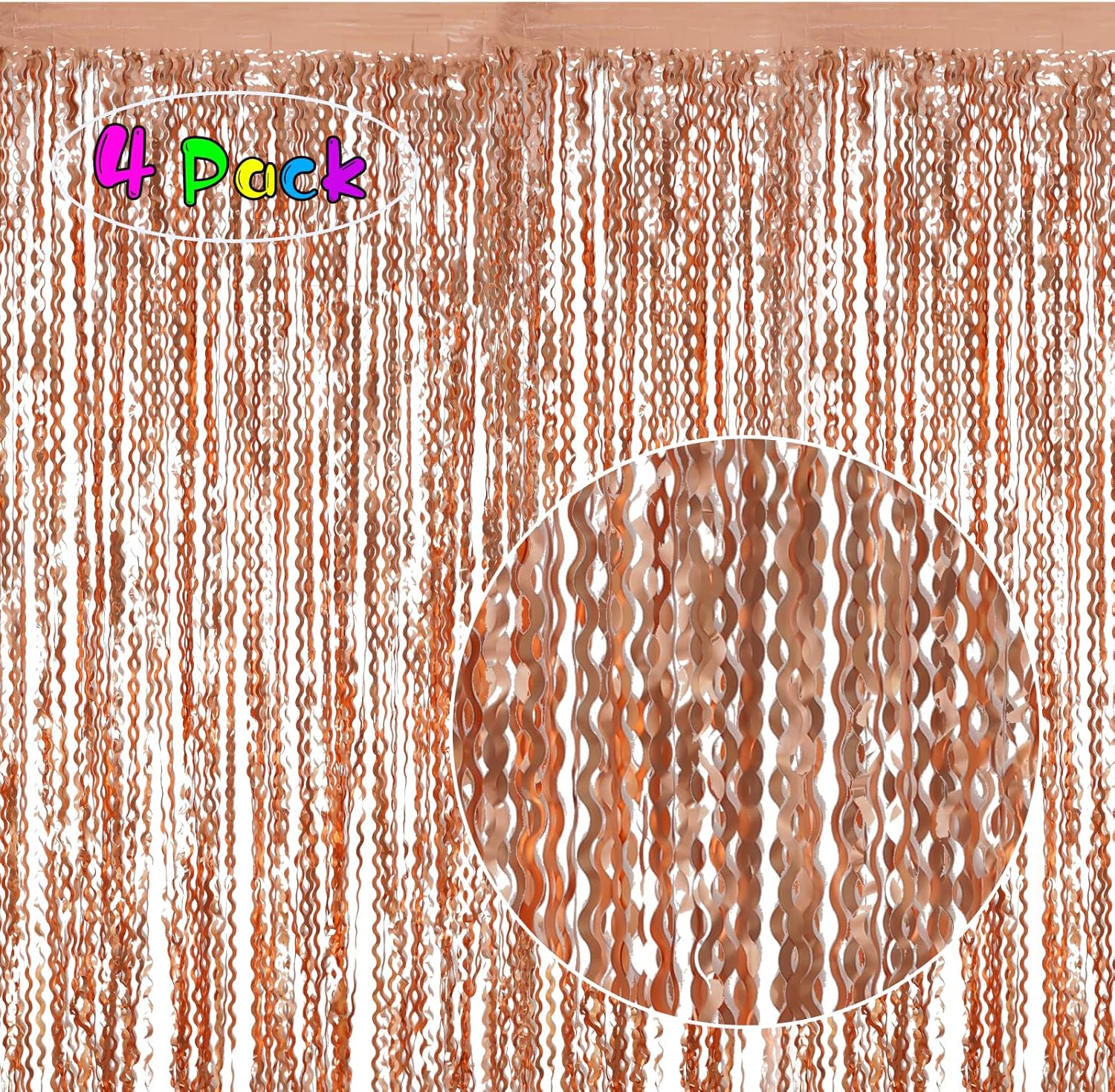 4 Pack Rose Gold Backdrop Birthday Decorations - 3.3x6.6ft Wavy Tinsel Foil Backdrop Party Streamer Party Supplies Background | Tinsel Curtain Backdrop for Parties