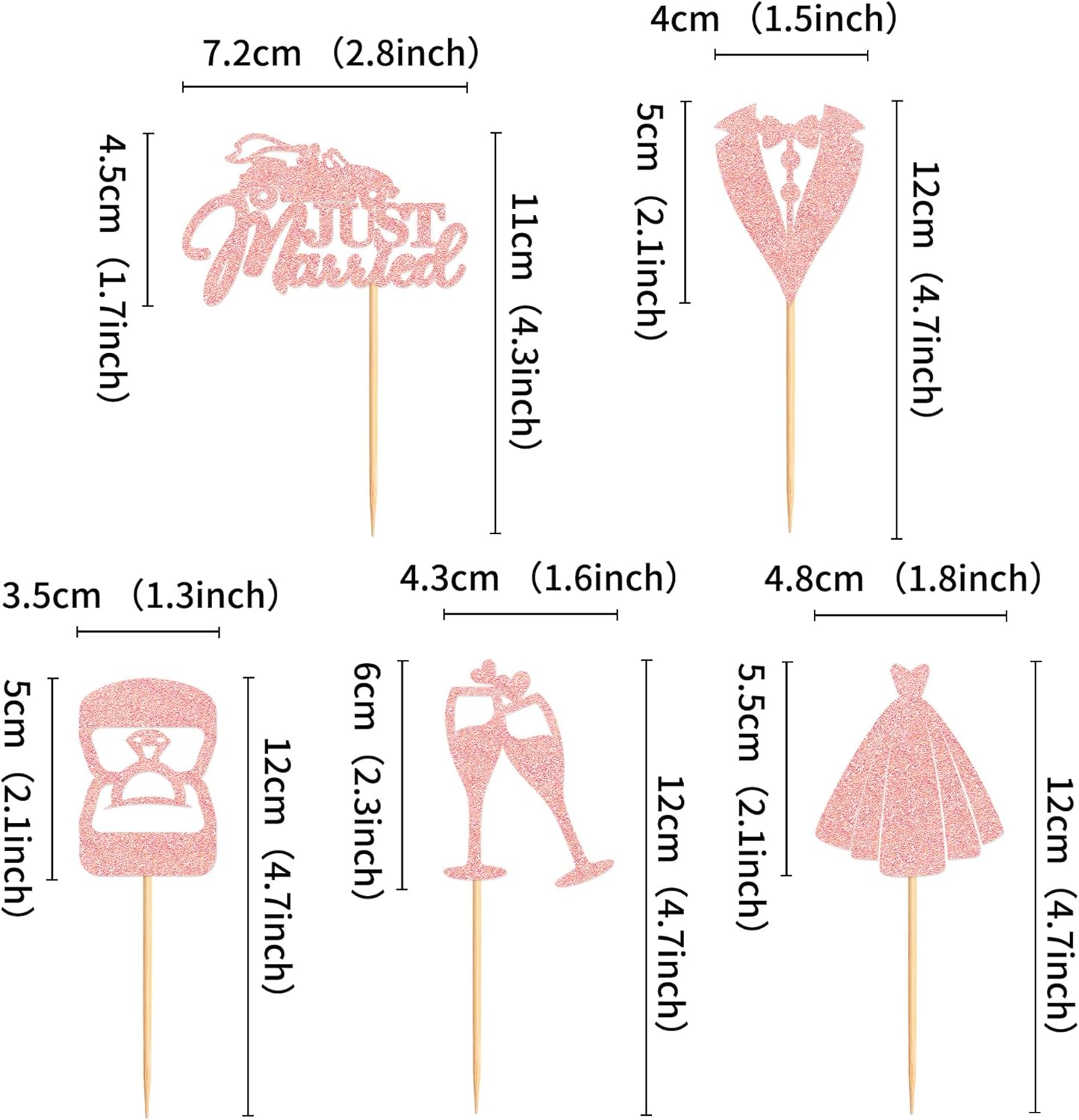 - š°ćUnique designćļ¼Sparkling adorable bride and groom cupcake toppers makes your cupcakes become the focus of bridal shower or wedding party. All cupcake toppers are pre-assembled, it can save much time for you.