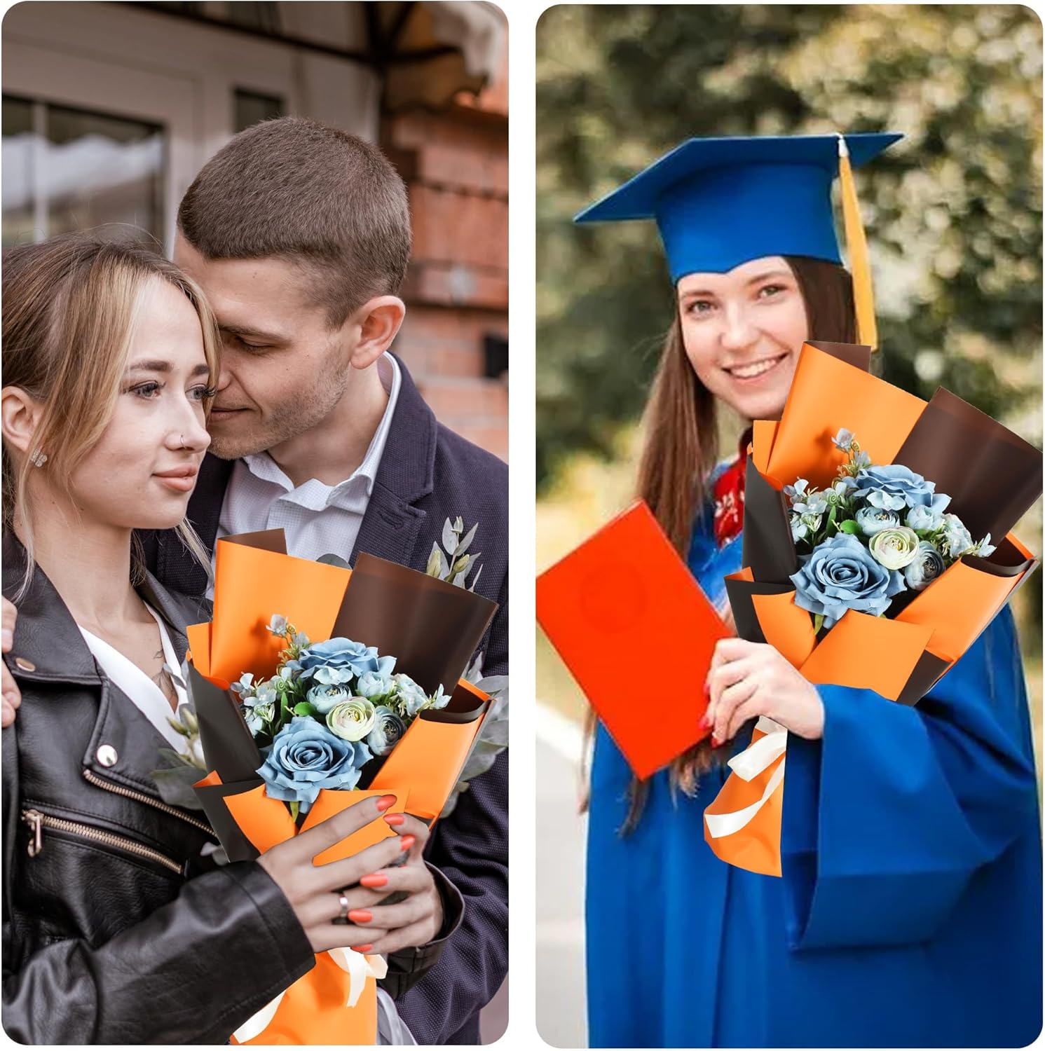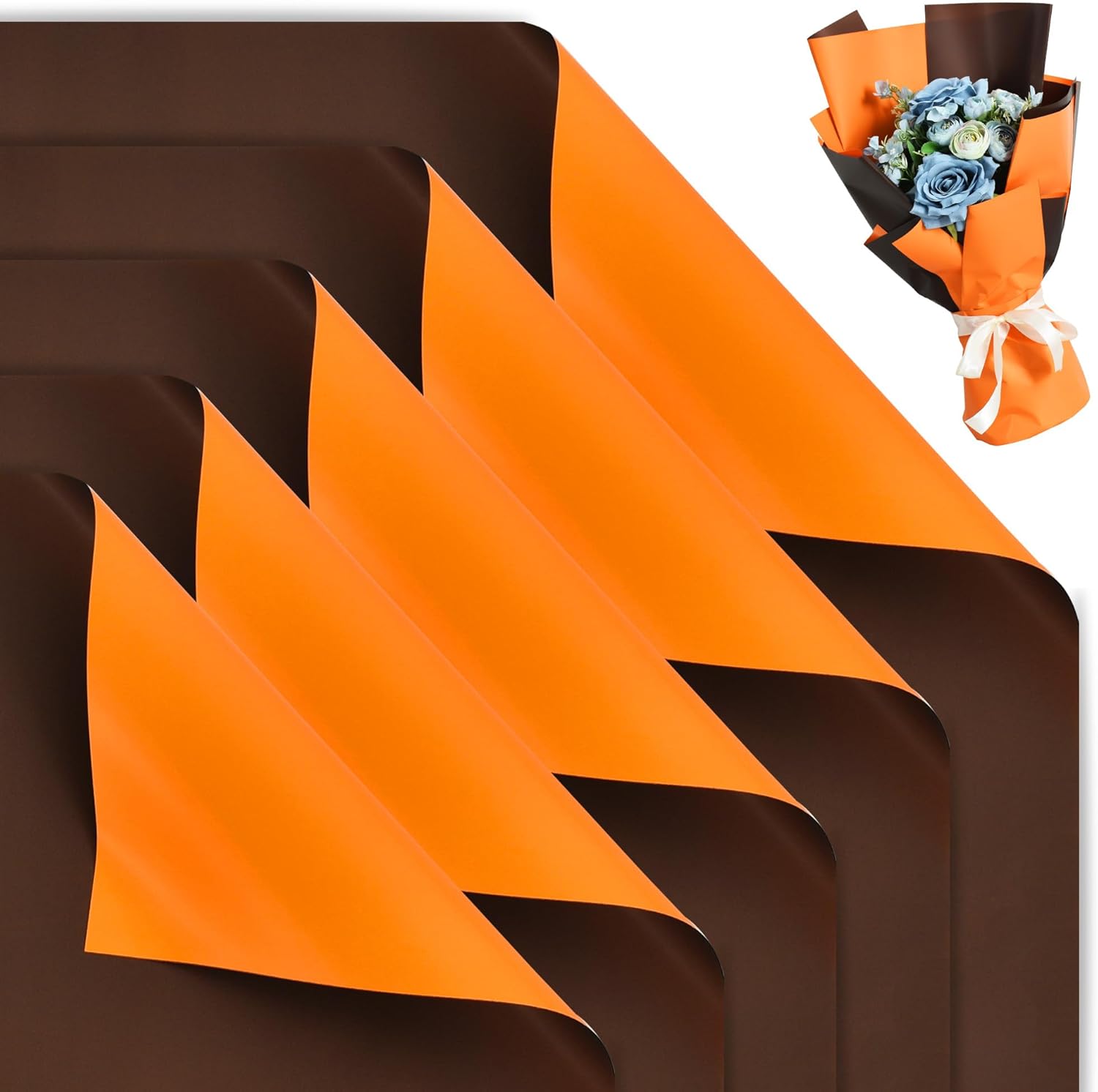 BEISHIDA 20Pcs Orange and Brown Double Sided Floral Wrapping Paper Matte Waterproof Flower Bouquet Wrapping Paper for Floral Wrap Florist Packing Supplies Birthday Valentine's Christmas Gift Wrapping