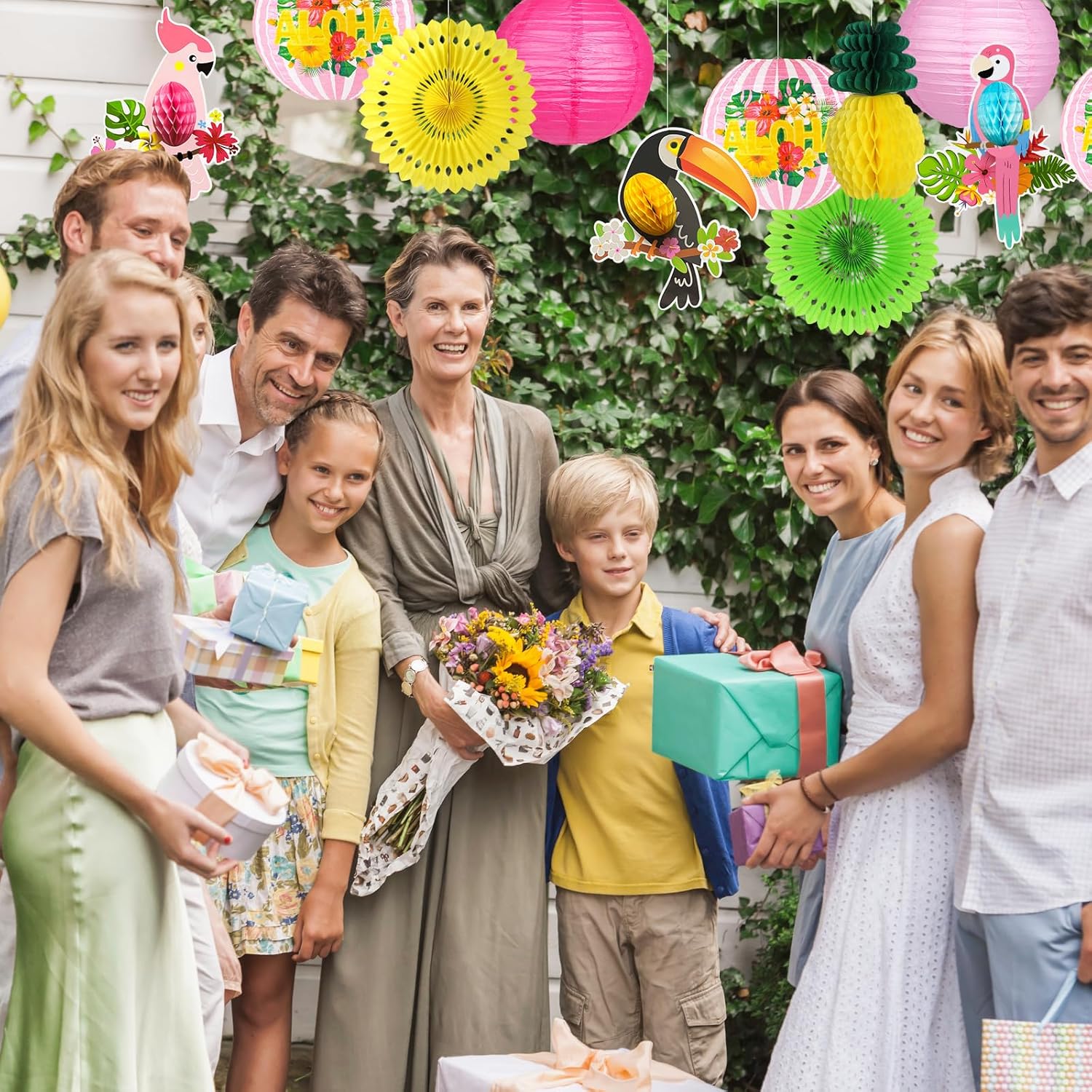 - PARTY DECORATIONS KIT - Our exclusively designed Hawaiian party decorations kit includes colorful paper lanterns, cute tropical parrot honeycomb decor elements and an art paper fan, these exciting items are a must for any summer party decorations