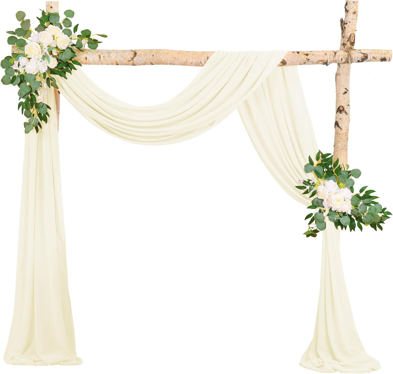 Ivory Sheer Chiffon Wedding Arch Draping Fabric, 1 Panel 28" x 20ft, Perfect for Wedding Ceremony & Reception Decoration