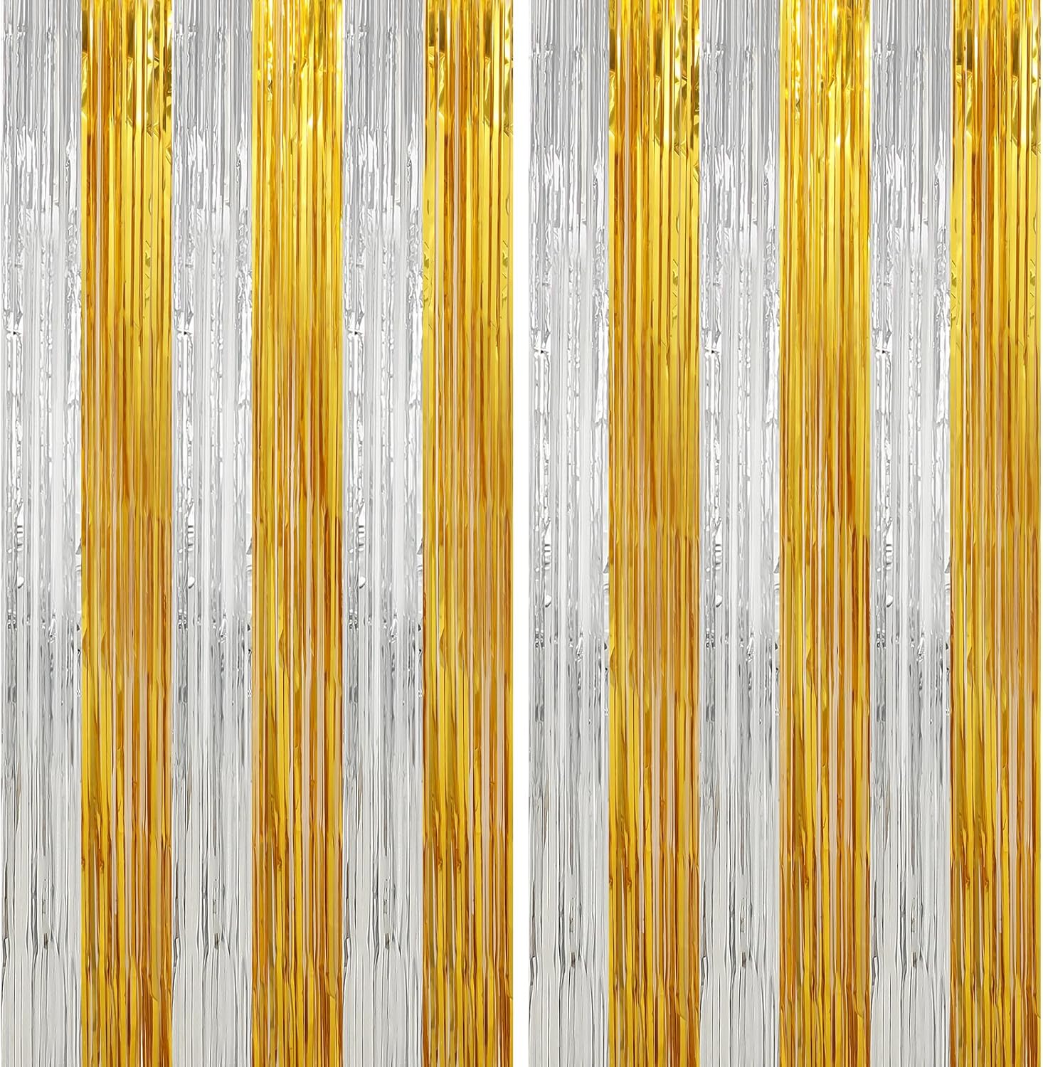 Crosize 2 Pack Foil Fringe Curtains Party Decorations, Gold Tinsel Curtain Backdrop for Parties, Door Streamers, Glitter Streamer Fringe Backdrop for Birthday Decoration (Gold and Silver, 2 Pack)