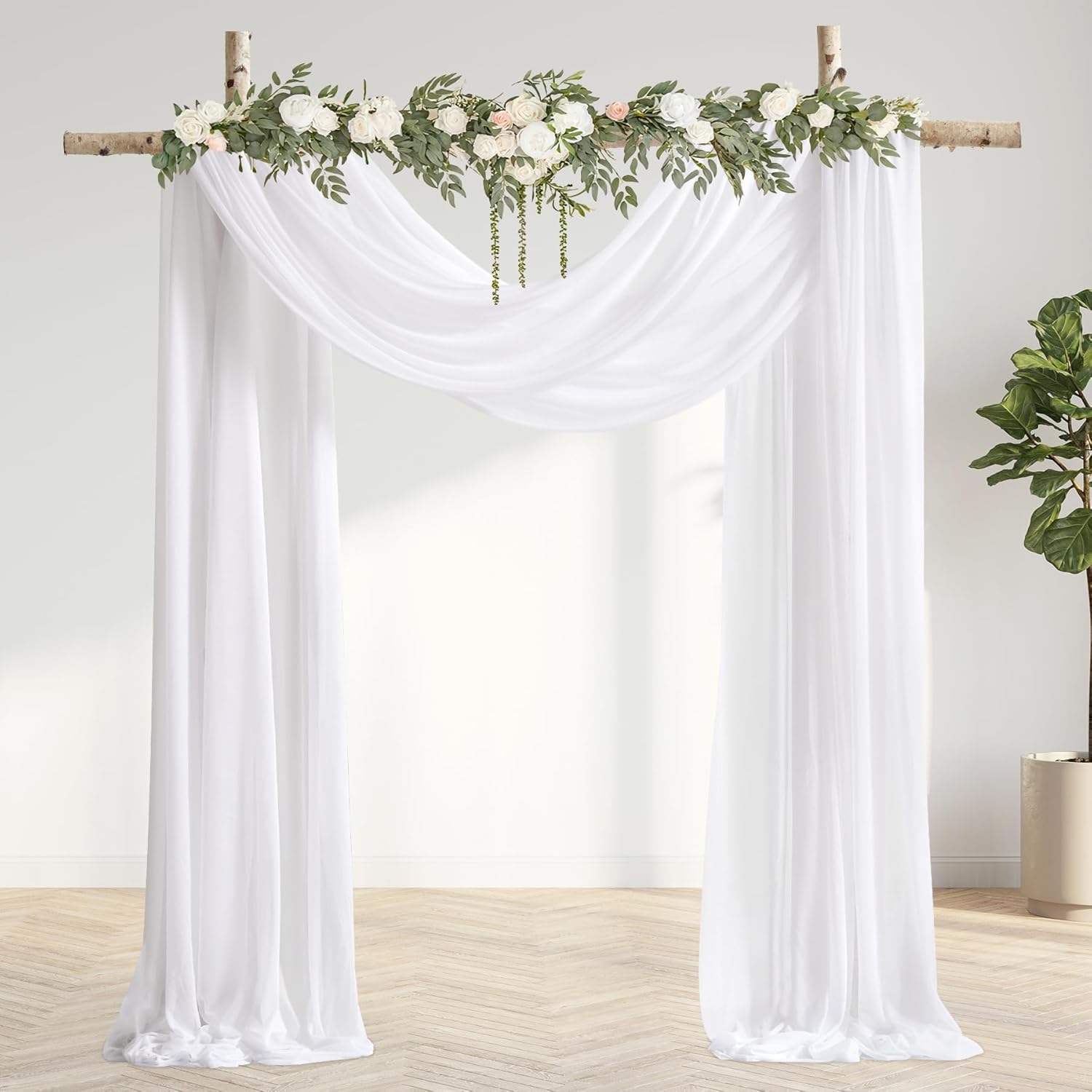 - Multipurpose Arch Draping Fabric: The chiffon fabric for draping are prefect for wedding ceremony reception, baby and bridal showers, photography background, party backdrop curtain decoration, decorative swags, window decorations and so on.