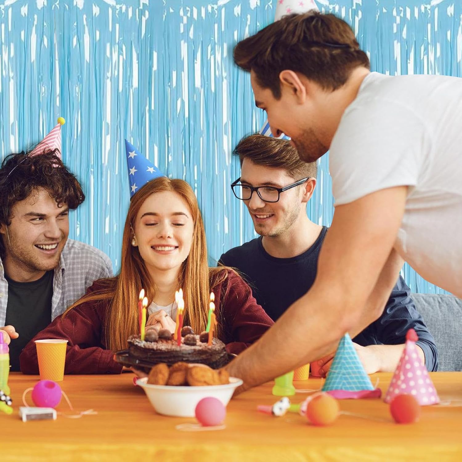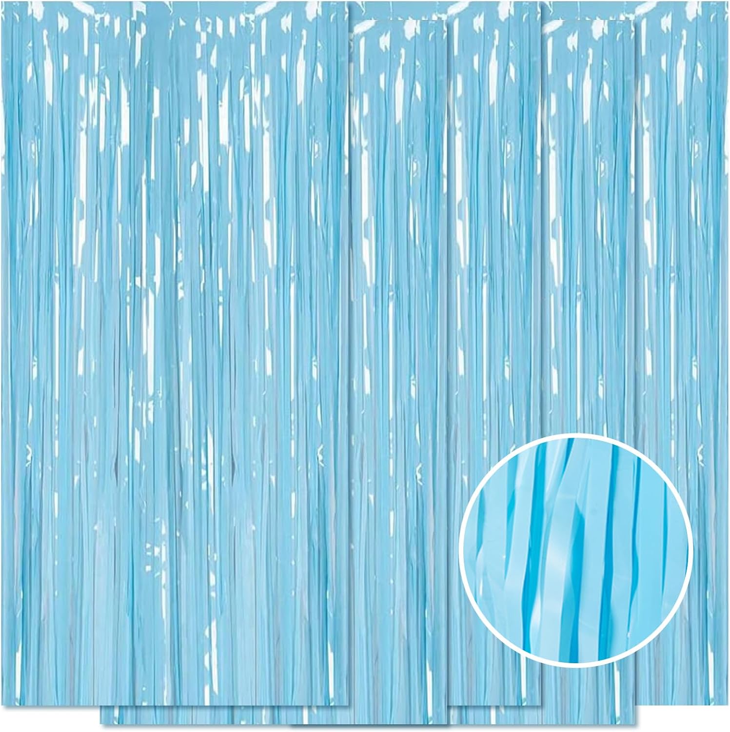 5 Pack Blue Foil Curtain Backdrop 3.2ft x 8.2ft Tinsel Foil Fringe Curtains Macaron Photo Booth Streamer Backdrop for Party Decorations Birthday Baby Shower Bachelorette Holiday Decor (Pastel Blue)