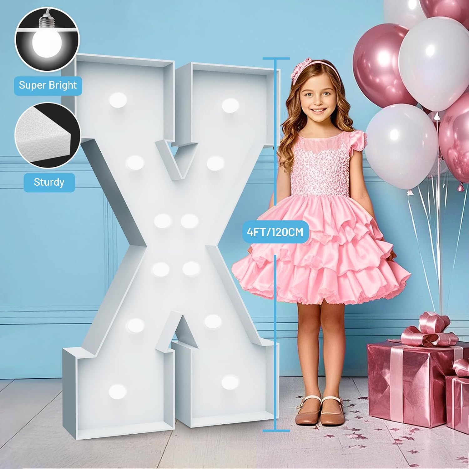 4FT Marquee Light Up Letters - Cool White Light Up Letters X with Fixed Water Bag, Party Decoration Large Marquee Light Up Letters can Be Used for Wedding Decoration, Birthday Party Decoration
