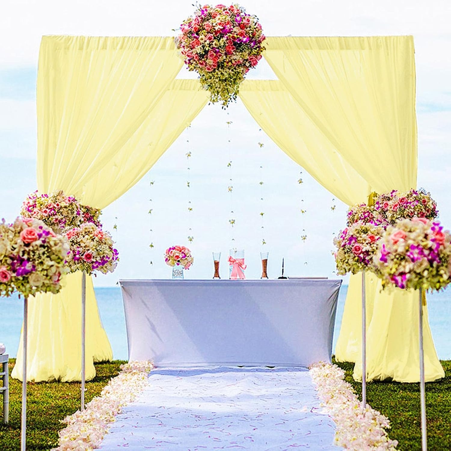 - β SHEER CHIFFON CURTAINS :Includes 2 Panels Width 5ft (total width 10ft for 2 panels) chiffon backdrop curtain yellow color--Different electronic devices seeing the image colors will different . Please refer to the actual product for specific color.
