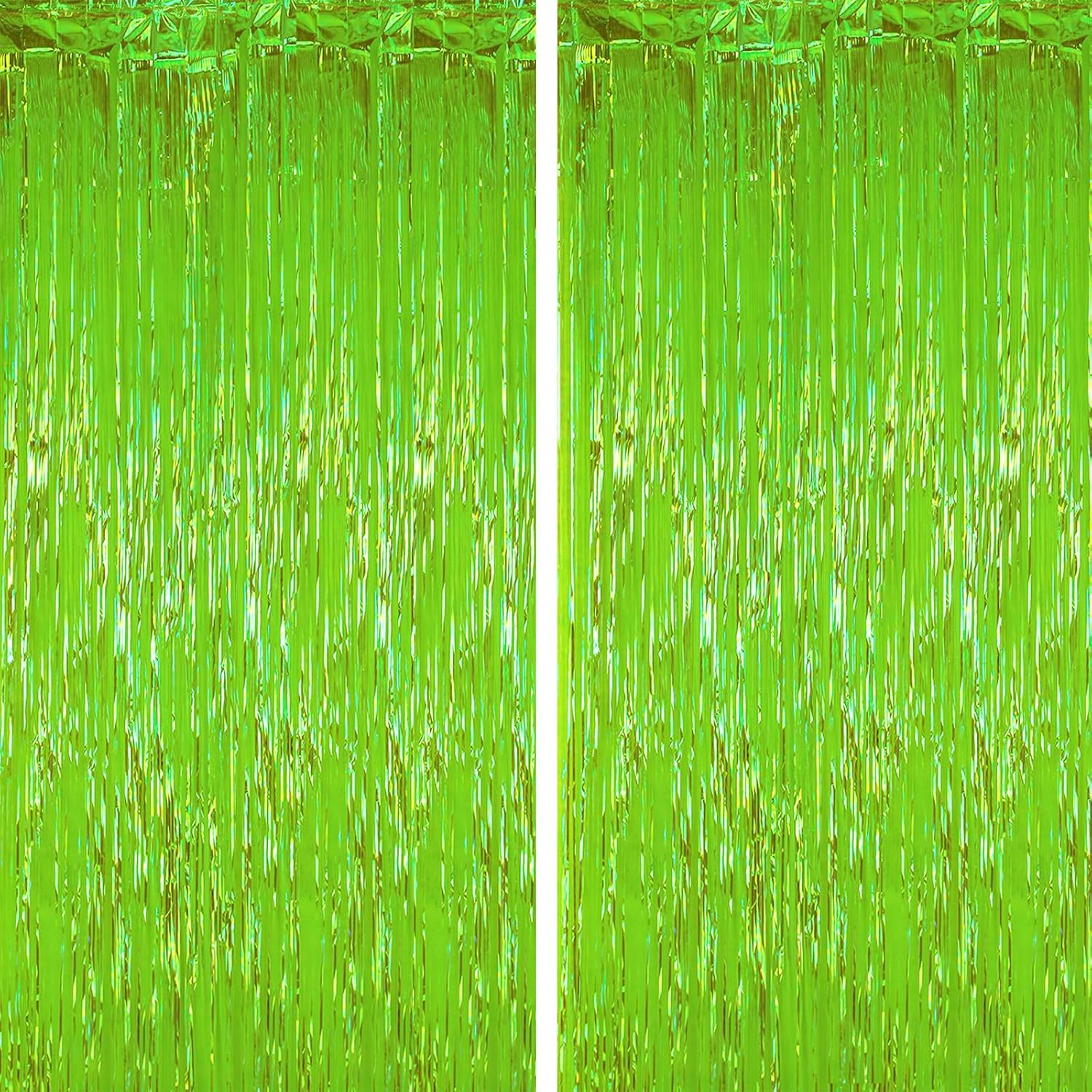 - Stunning Decorative Set: You'll receive 2 pcs iridescent green foil fringe backdrop curtains, each measuring 3.28 ft (wide)ร6.56 ft (drop). Enough length foil fringe curtains backdrops are perfect for the door or wall to create an impressive decoration