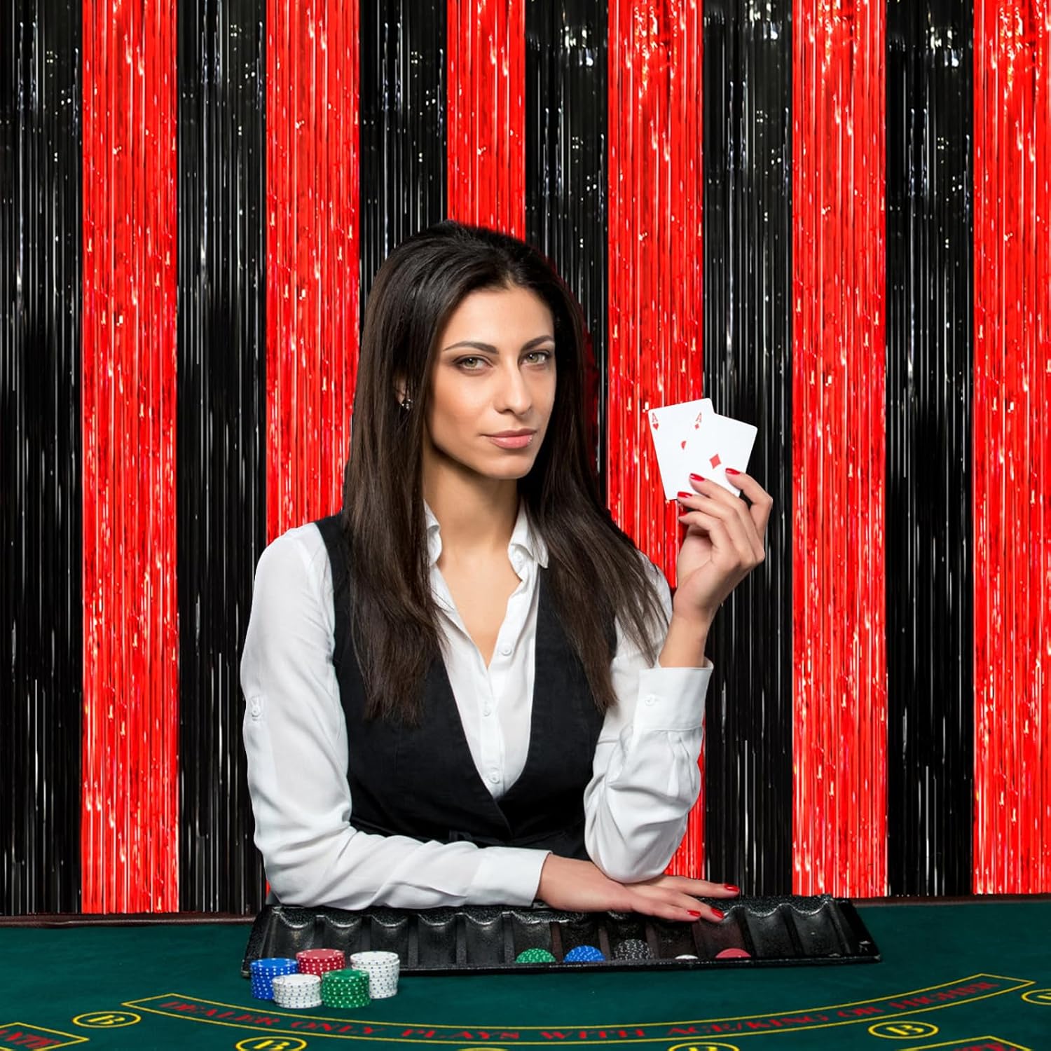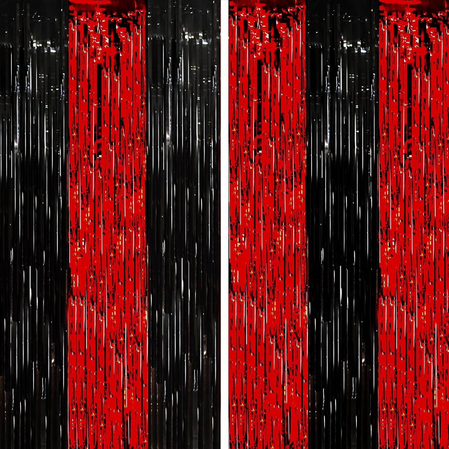 - Stunning Decorative Set: You'll receive 2 pcs black and red foil fringe backdrop curtains, each measuring 3.28 ft (wide)ร6.56 ft (drop). Enough length foil fringe curtains backdrops are perfect for the door or wall to create an impressive decoration
