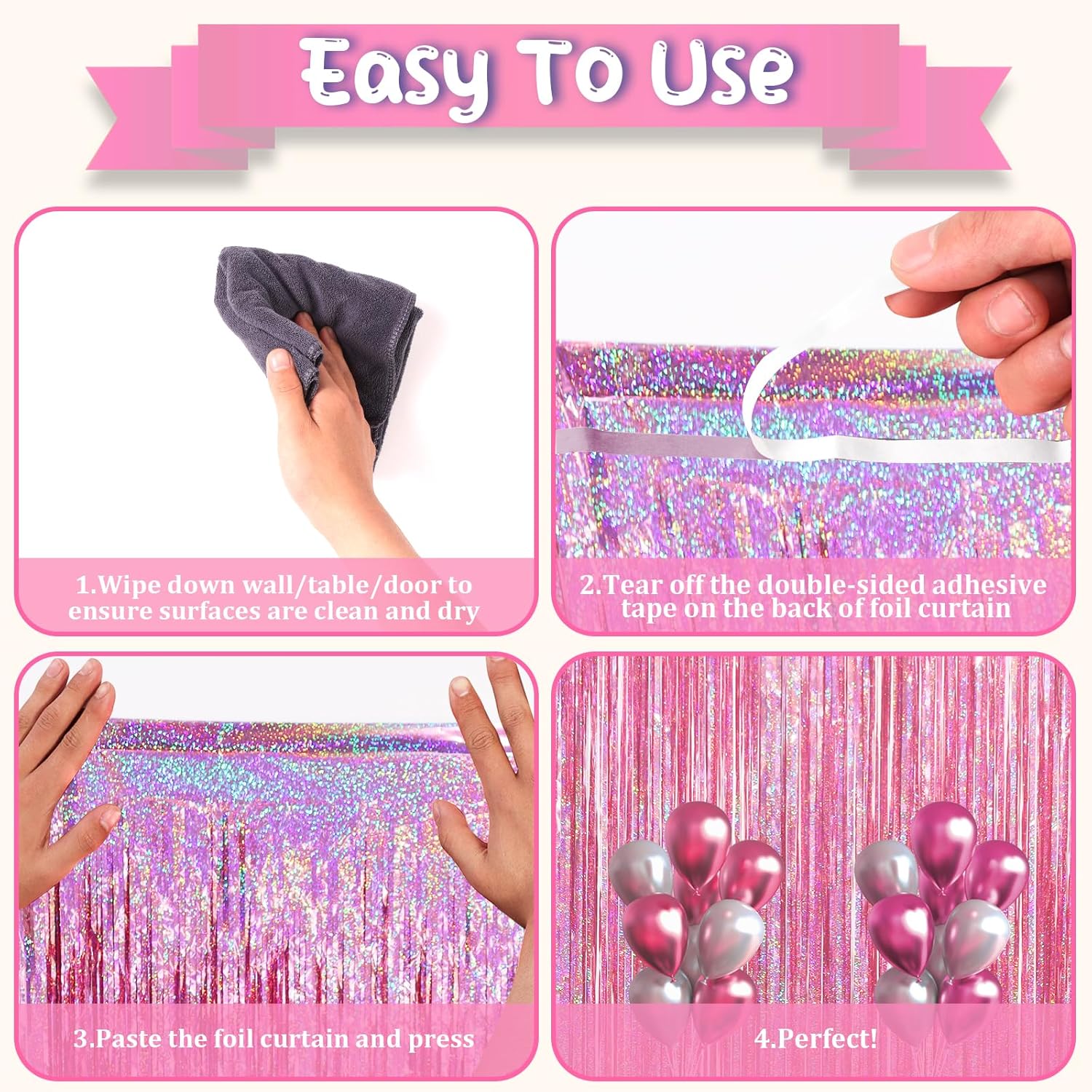 - Versatile and Reusable: making the Voircoloria pink foil curtains ideal for princess, gender reveal, pink pool, anniversary, valentine's day, mother's day, cowgirl, pink disco, bridal etc. You can easily store and reuse them for future celebrations.