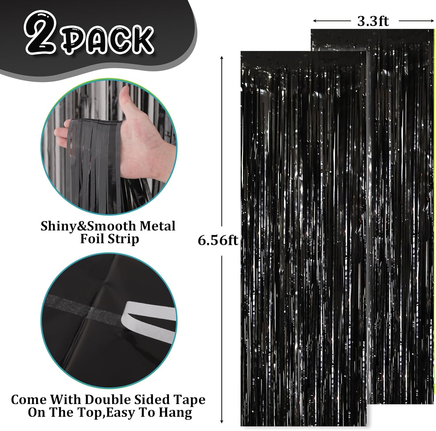 - Stunning Decorative Set: You'll receive 2 pcs black foil fringe backdrop curtains, each measuring 3.28 ft (wide)ร6.56 ft (drop). Enough length foil fringe curtains backdrops are perfect for the door or wall to create an impressive decoration