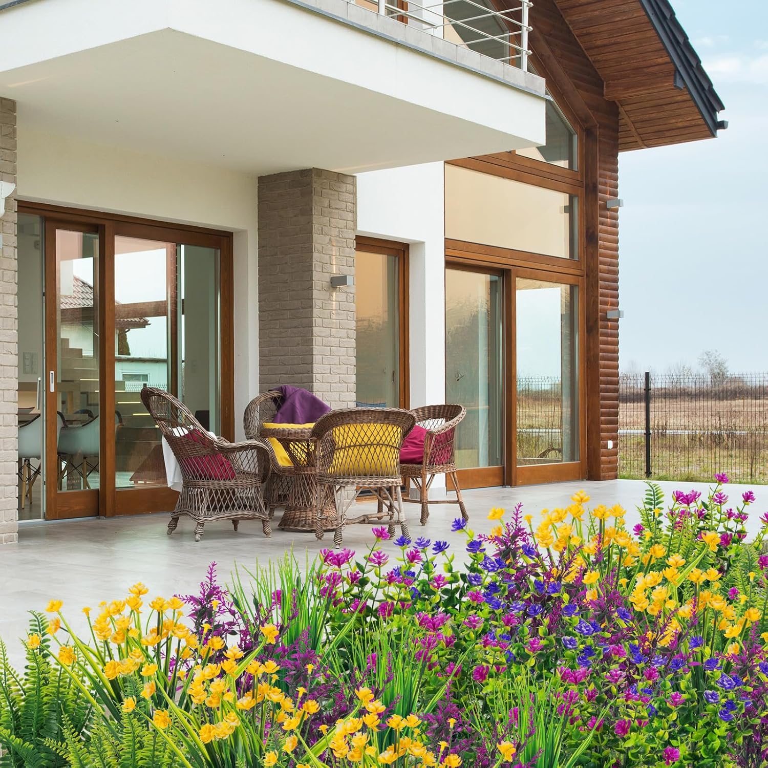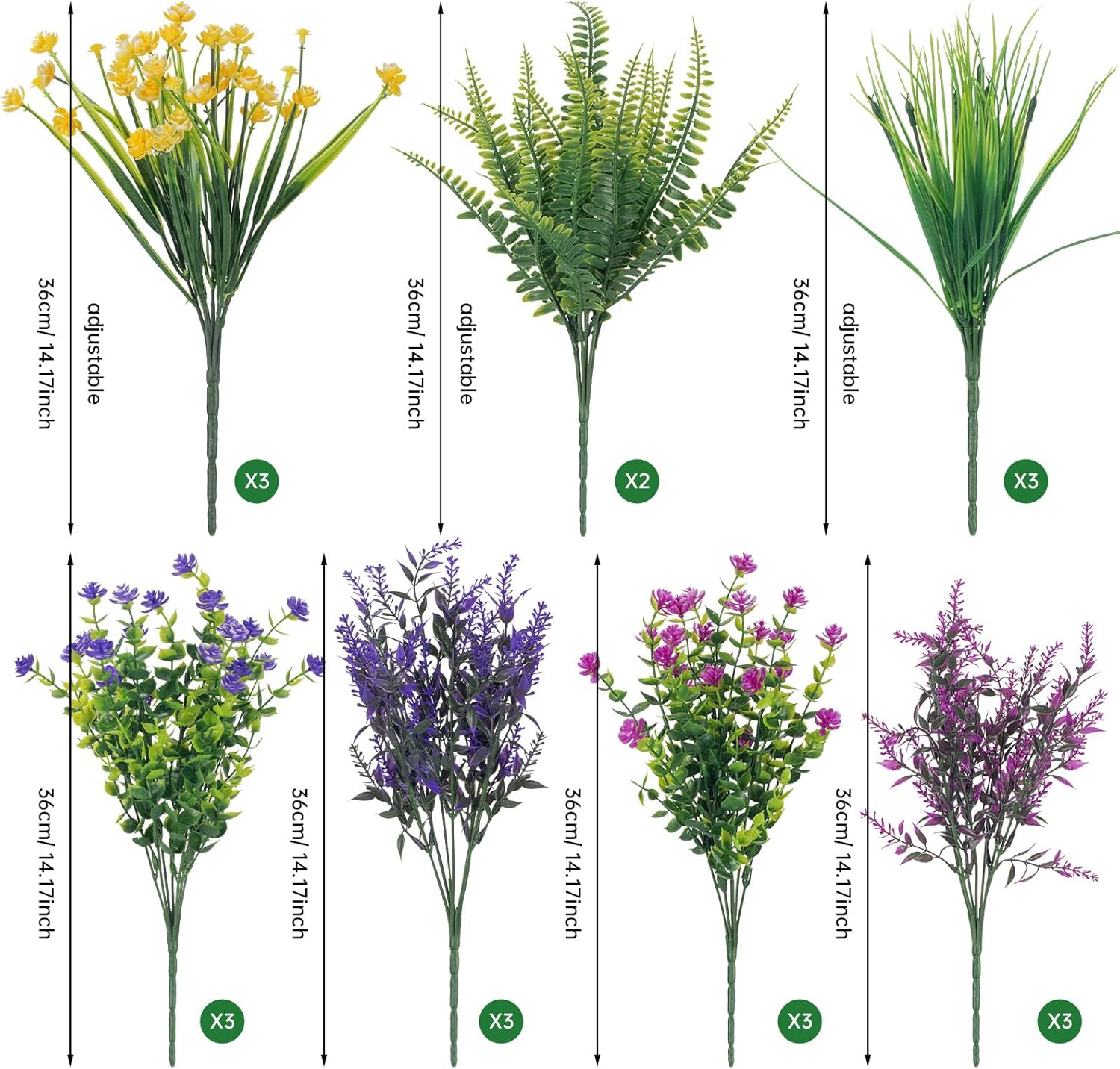20 Bundles Artificial Flowers Outdoor No Fade UV Resistant Fake Plastic Flowers Faux Plants for Garden Patio Porch Window Box Home Wedding Farmhouse Hanging Décor
