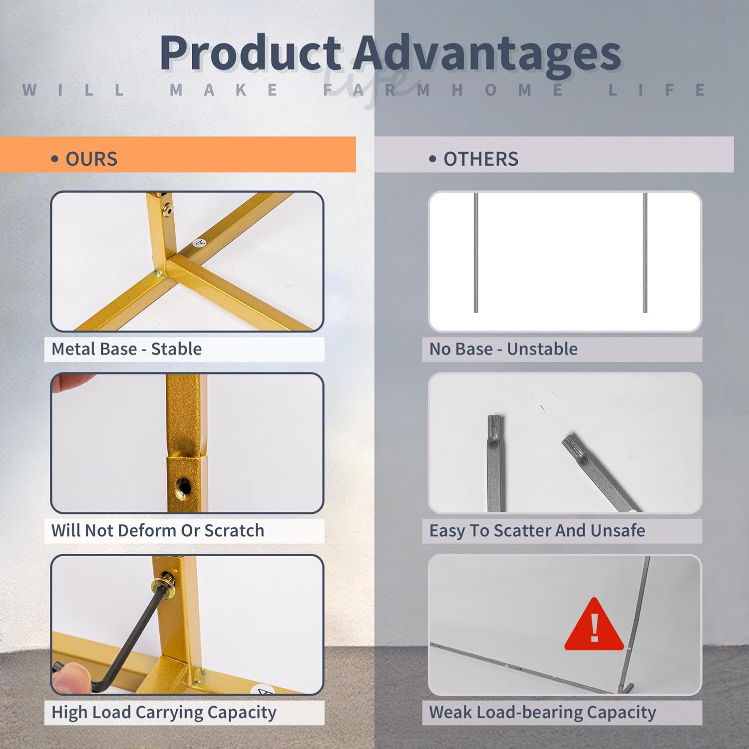 - 【Easy Assembly】: Metal wedding arch backdrop stand can be quickly assembled with screws in minutes.Arch backdrop stand comes with simple, user-friendly setup guide, ensuring quick assembly and disassembly, Portable to space it anywhere at your will. Gold metal square wedding arch frame would be a graceful arch way in your party event or garden.