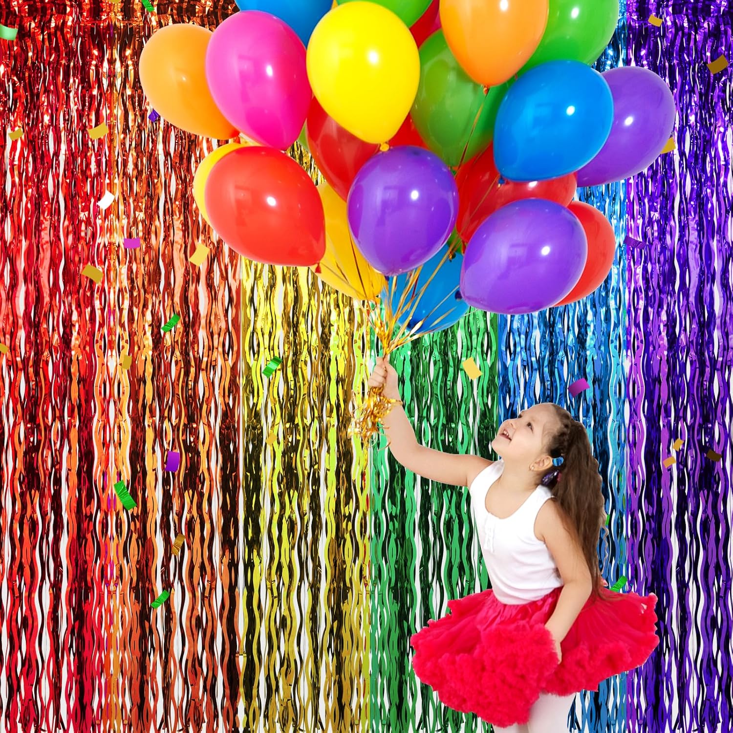 - Easy to Use: Our rainbow foil fringe backdrops come with self-adhesive tape at the top for easy use. Simply tear off the backing and attach it wherever you desire, creating a sparkling and festive atmosphere at your party with ease.