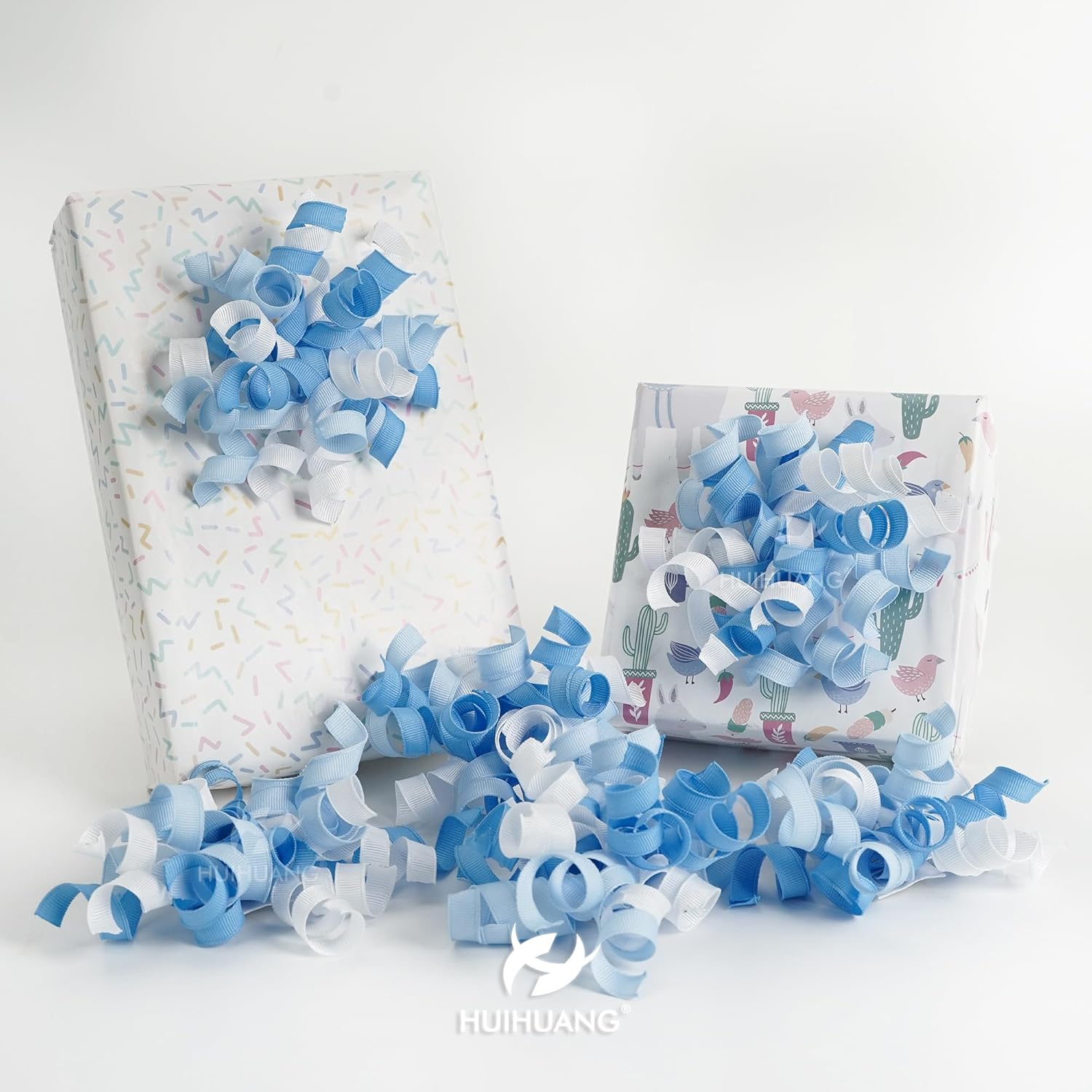 - SIZE & PACK: Each package contains 6 pcs mixed color blue and white curly bows are made of 12 strands of 3/8"(9mm) wide grosgrain ribbon that measure about 4.5~5" x 4.5~5"