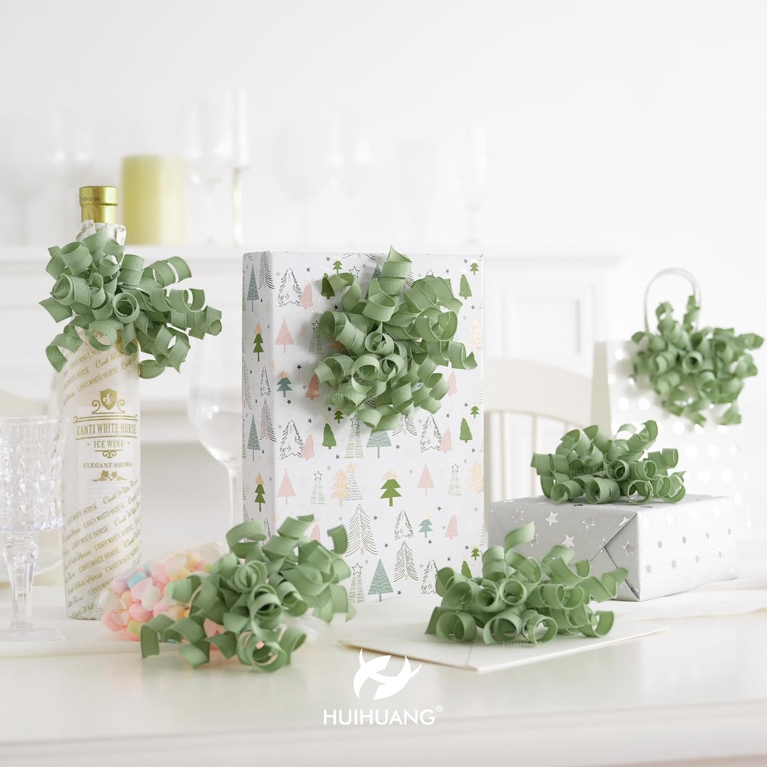 - SIZE & PACK: Each package contains 6 pcs sage green curly bows are made of 12 strands of 3/8"(9mm) wide grosgrain ribbon that measure about 4.5~5" x 4.5~5"
