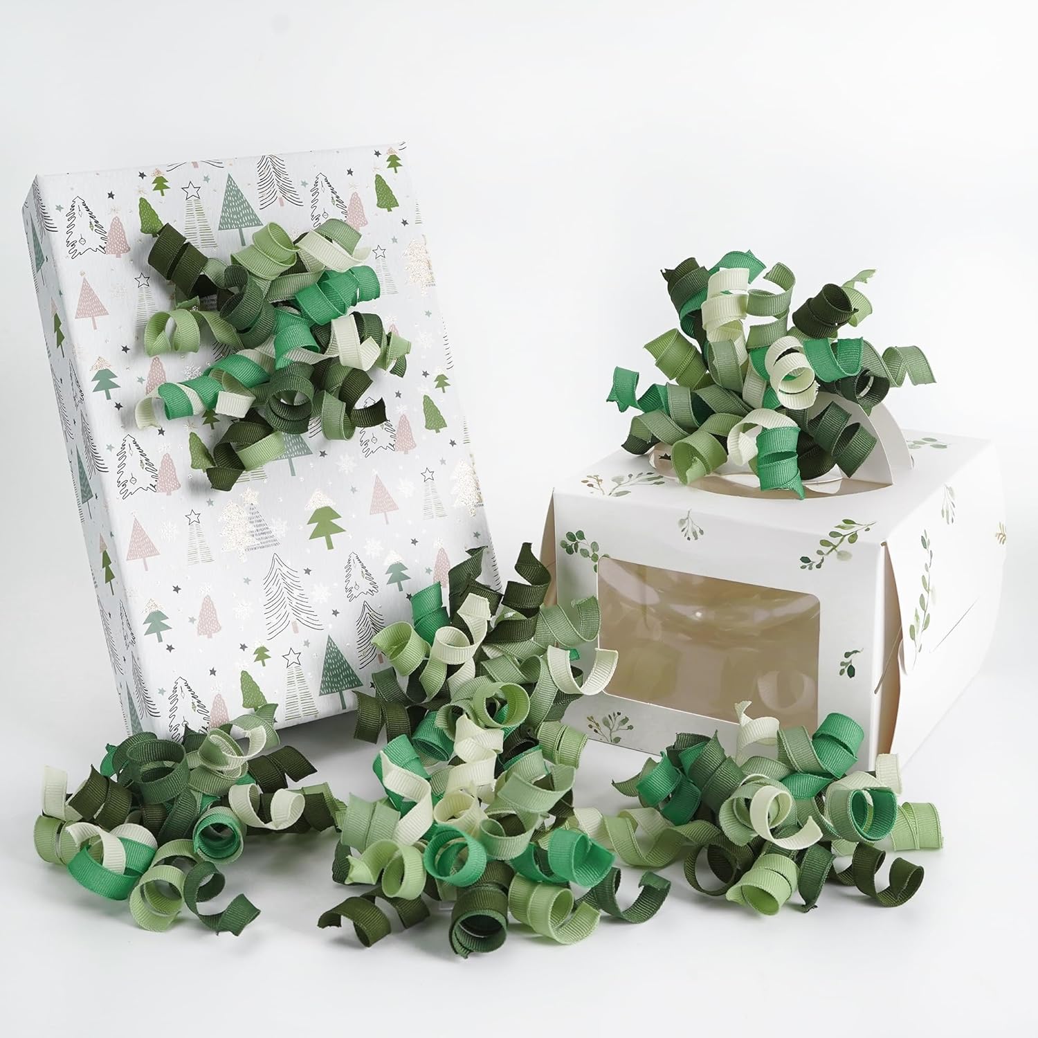 - SIZE & PACK: Each package contains 6 pcs mixed color sage green/ivory/light green/moss green curly bows are made of 12 strands of 3/8"(9mm) wide grosgrain ribbon that measure about 4.5~5" x 4.5~5"