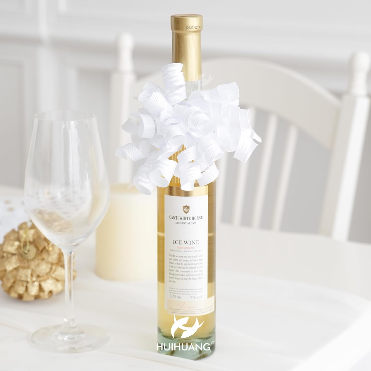 HUIHUANG White Bows for Gift Wrapping, White Curly Ribbon Bows Self Adhesive Burst Gift Bow for Christmas Presents, Wine Bottle, Treat Bags, Bridal Shower Wedding Party Favor - 6 Counts