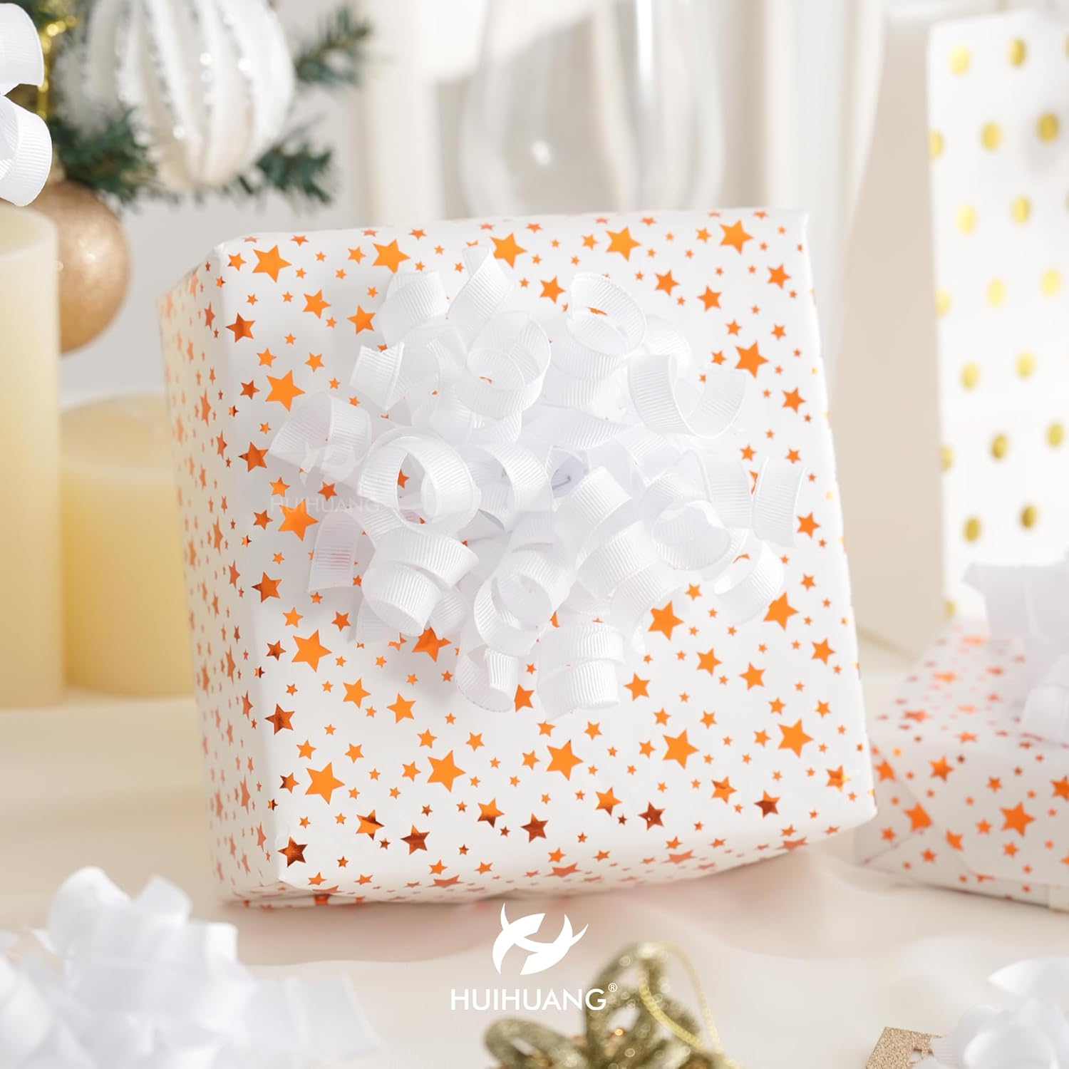 - SIZE & PACK: Each package contains 6 pcs white curly bows are made of 12 strands of 3/8"(9mm) wide grosgrain ribbon that measure about 4.5~5" x 4.5~5"